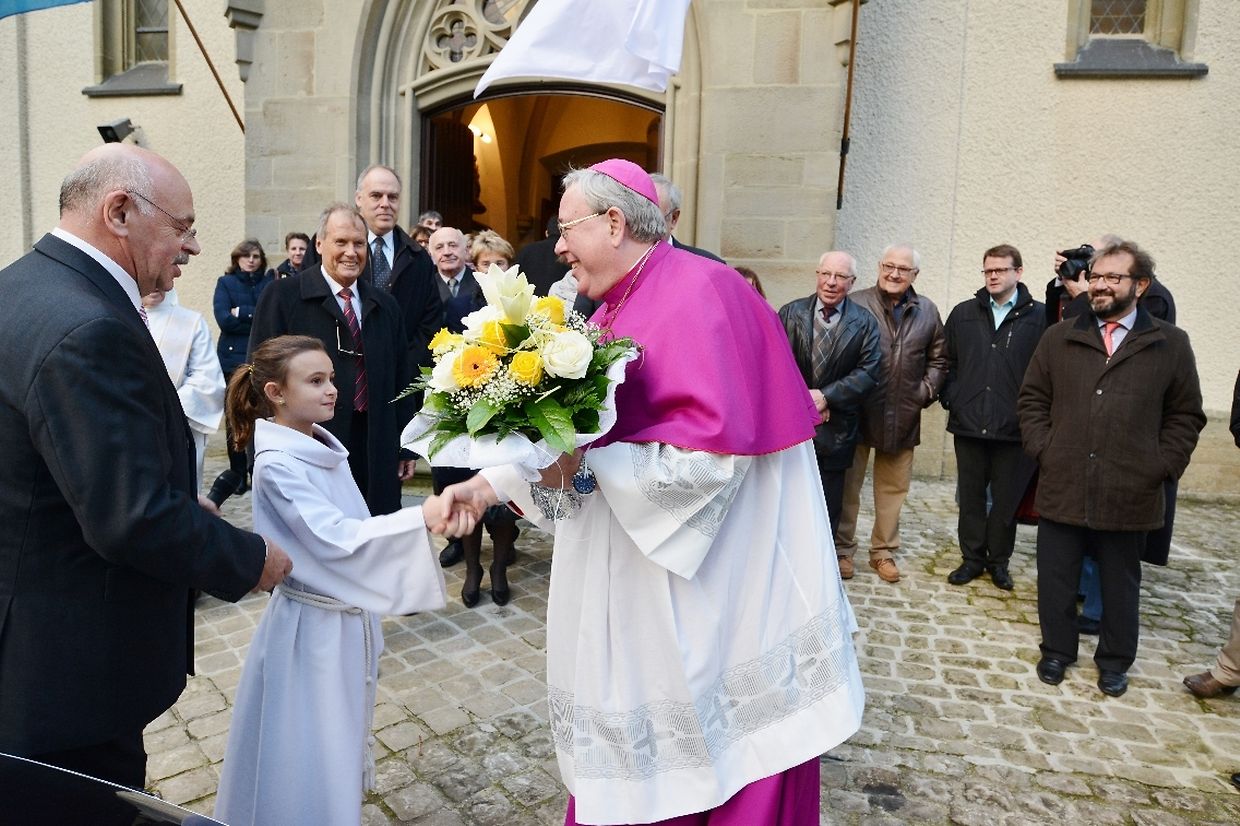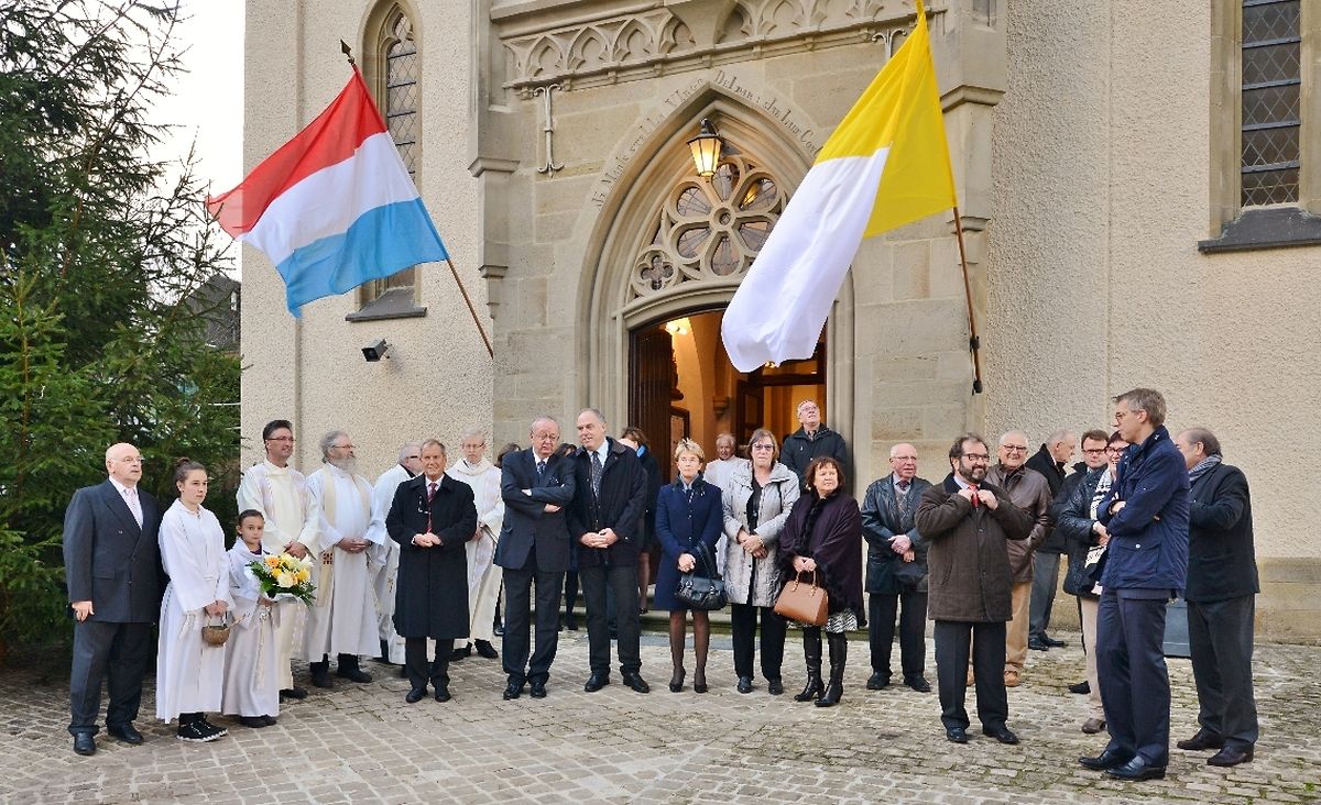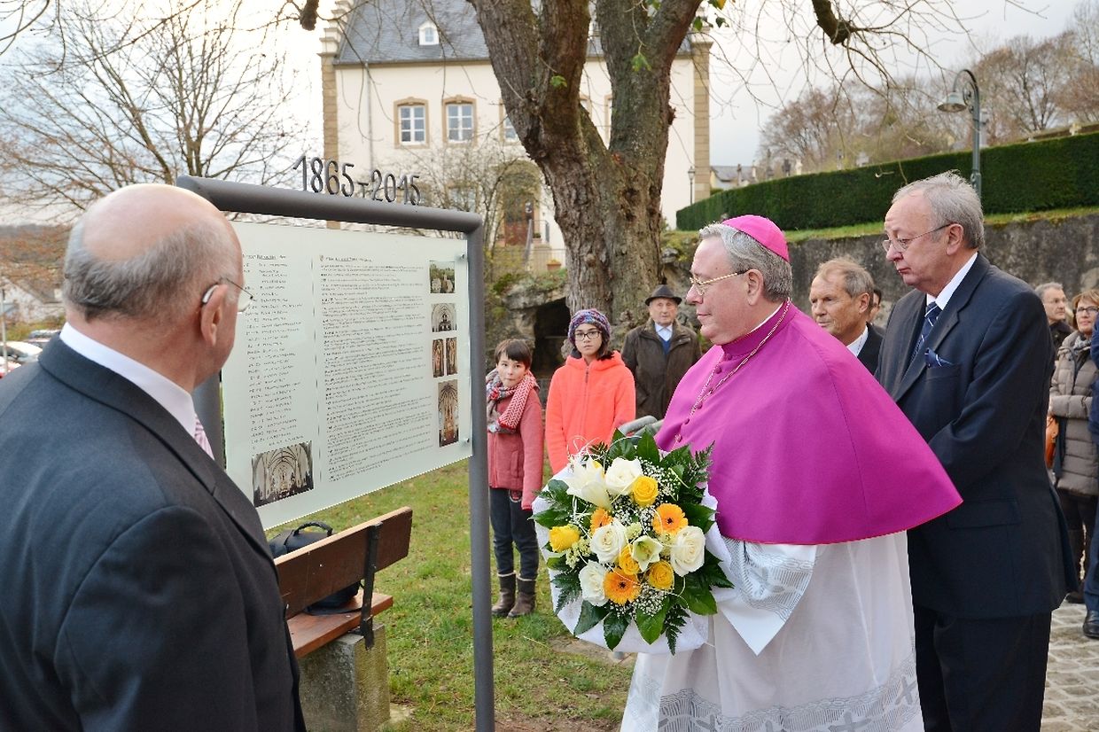 PDF: Erënnerungsplack, déi virun der Kierch ageweiht ginn ass.