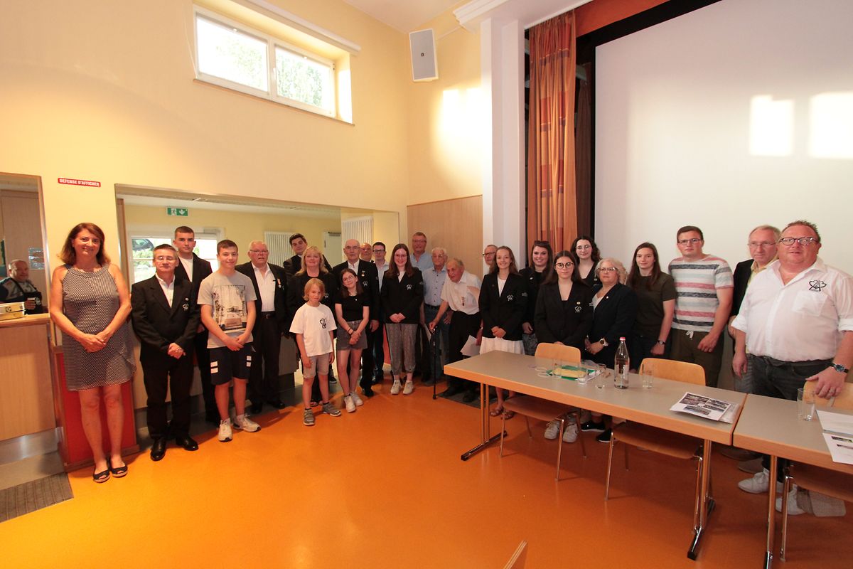 2 Musikant(inn)en , d’Jeanny Cannivy-Lemmer an den Norb Classen kruten eng Medail de Merite en vermeille avec palmette fir 40 Jar Musek, an den Norbert Classen krut e spezielle Merci well hien elo zanter 40 Jar de Fändel dréit, fir d’éischt fir d’Becher Musek, an déi lescht 14 Jar fir d’BBM