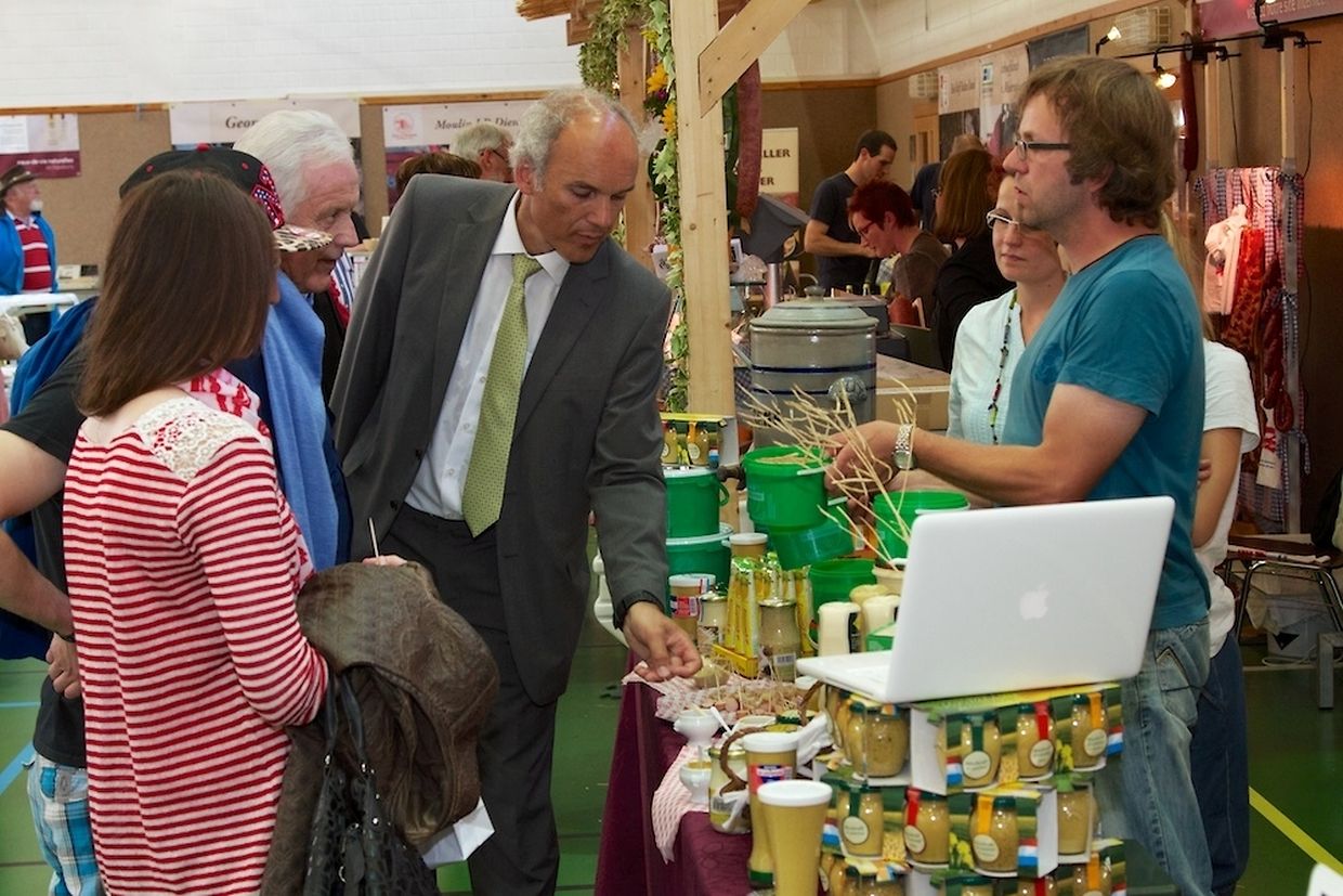 Minister Marco Schank bewunderte die Vielfalt dieser Ausstellung, dankte den Gründervätern für deren Initiative zu dieser Ausstellung und nutzte die Gelegenheit, alle Gemeindeverantwortlichen dazu aufzurufen, den Einsatz einheimischer Produkte, vor allem auch in Schulen und den „Maisons relais“ zu fördern.