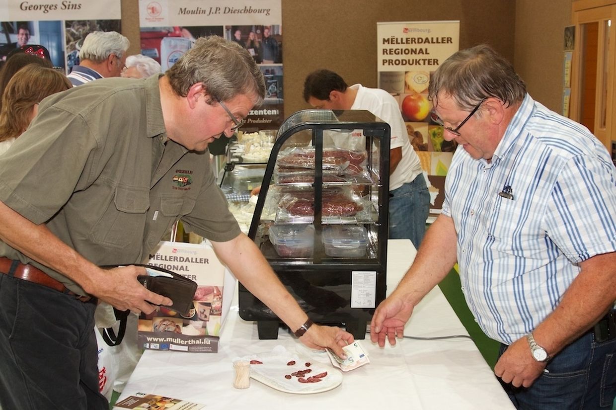 Am Wochenende vom 30. August fand nun die 24. Auflage der vom lokalen „Syndicat d'initiative et de tourisme Aerenzdallgemeng“ (SI) organisierten Ausstellung „Weekend Lëtzebuerger Produkter“ in der Sporthalle in Medernach statt. An den Ständen von über 30 Ausstellern bot sich Genießern und Liebhabern einheimischer kulinarischer Produkte und Spezialitäten die Gelegenheit, die Produzenten persönlich kennenzulernen, sich über die Herstellung ihrer Produkte zu informieren, sie zu probieren und auch zu kaufen. Das Hauptaugenmerk dieser Ausstellung, nämlich die Förderung von Lebensmitteln aus Luxemburger Herstellung hat sich, angesichts der beachtlichen Besucherzahlen seit 24 Jahren, sehr bewährt.