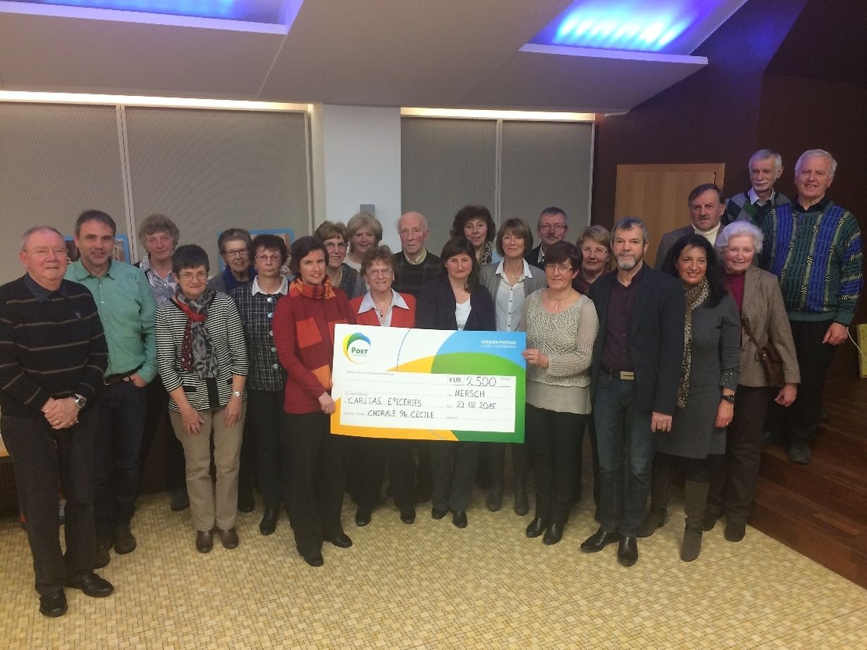 Kassiererin Nelly Vullers berichtete über einen sehr gesunden Kassenstand. Angesichts dessen wurde ein Scheck in Höhe von 2500 Euro für « Caritas – Epiceries sociales » an Mme Thewes überreicht. Ebenfalls wurde ein Scheck von 2500 Euro an Caritas überreicht , anlässlich der Adventsaktion der Pfarrei für verfolgte Christen im Nord-Irak.