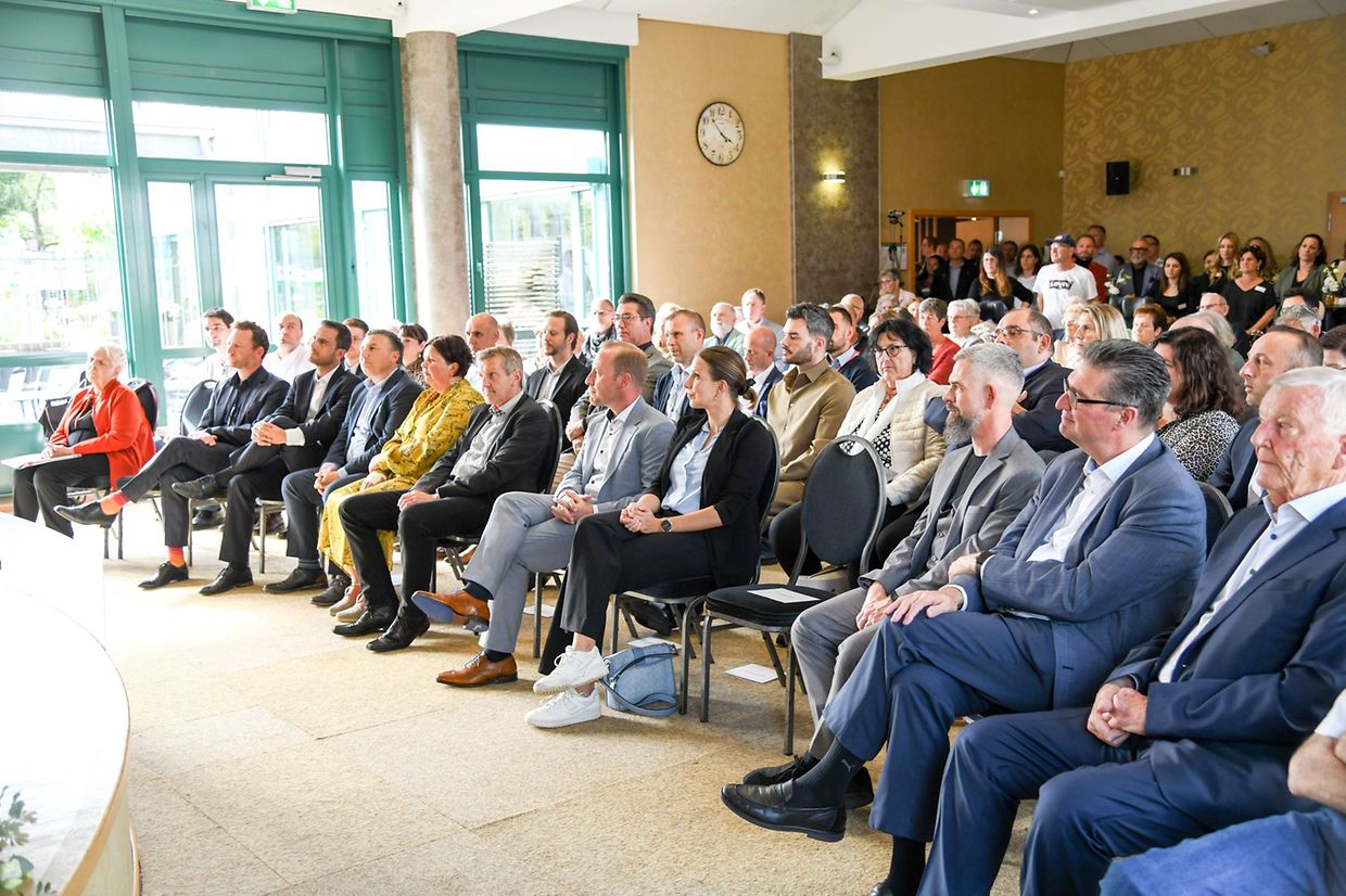 Im Anschluss sprach Herr Julien Demoulin, Generaldirektor von Sodexo Luxemburg, in deren Trägerschaft sich das Pflegeheim befindet. Er richtete seinen Blick auf die zukünftigen Herausforderungen im Bereich der Altenpflege. Gemäß dem Motto von Sodexo „Jeden Tag zu einem besseren machen“, betonte er die Notwendigkeit, die Qualität der Pflege kontinuierlich zu verbessern und innovative Ansätze zu verfolgen. Die Zukunft böte große Herausforderungen, doch er zeigte sich überzeugt, mit kreativen Lösungen und einem starken Team die besten Bedingungen für die Bewohner schaffen zu können.