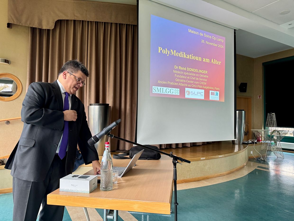 Am 26. November hielt der bekannte Geriater Dr. René Dondelinger einen Fachvortrag zum Thema Polymedikation vor einem interessierten Publikum in der Réesidence pour personnes âgées Op Lamp in Wasserbillig. Unter den Zuhörern befanden sich neben Mitarbeiten, Bewohnern und Angehörigen auch interessierte Bürger aus der Gemeinde.