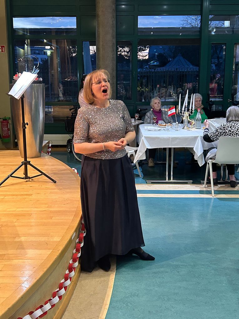 Die musikalische Unterhaltung des Abends gestaltete die Sängerin Diane Juchem zusammen mit dem Akkordeonisten Maurizio Spiridigliotti, die mit stimmungsvoller Opernballmusik für eine elegante Atmosphäre sorgten. Unter anderem standen auf dem Programm: „Mein Liebeslied muss ein Walzer sein“ von Robert Stolz, „So küsst man nur in Wien“ von Paul Abraham oder „Wien, du Stadt meiner Träume“ von Rudolf Sieczynski. Die Darbietung dieser, und vieler anderer klassischer Melodien aus bekannten Operetten, rundete den Abend ab und versetzte die Anwesenden in die festliche Stimmung eines echten Wiener Balls.