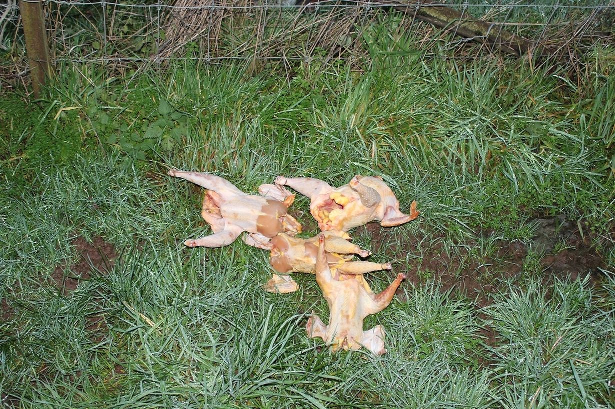 Ech hun beim spadséiren goen zu Mäerzeg an enger Wiss dës traureg Entdeckung gemeet. Wann een Iesswueren esou hefeg huet, fir wat et nët deen Leit gin déi näischt hun? Un dësen Poulets hätten sech 6-8 Leit kënnten sat iessen. Mee onglécklecherweis hun dës Poulets mussen muttwëlleg verschwengst gin.
