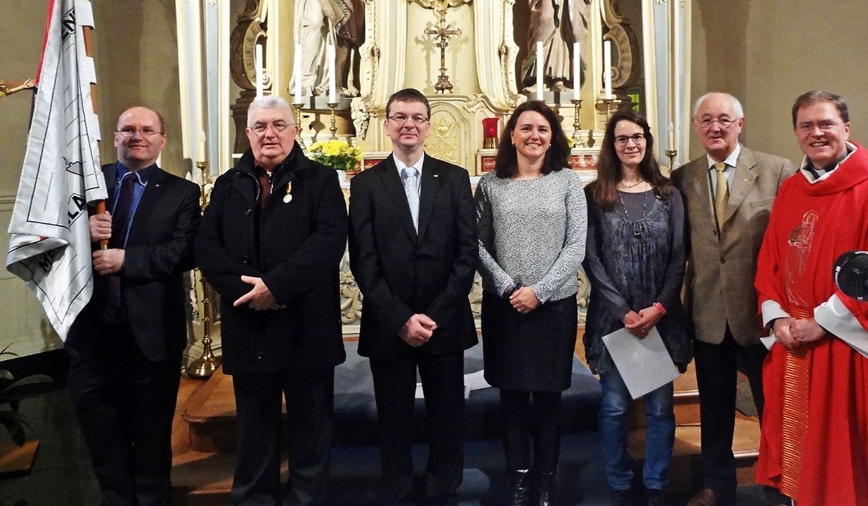 Nach der Messe zur heiligen Caecilia, die von den beiden Chören aus Michelau und Bourscheid unter Leitung von Marcin Wierzbicki und Herrn J.-Fr. Eischen an der Orgel festlich gestaltet wurde, konnten Dechant François Mueller und John Dusseldorf als Vertreter des Piusverbandes folgende verdienstvolle Sänger auszeichnen: Caroline Minelli-Hoffmann und Marcin Wierzbicki erhielten das Verbandsabzeichen für 5 Jahre Vereinszugehörigkeit, und Fähnrich Jean-Marie Bartholomey wurde mit der Bronze-Medaille für 10 Jahre Mitglied im Piusverband belohnt.