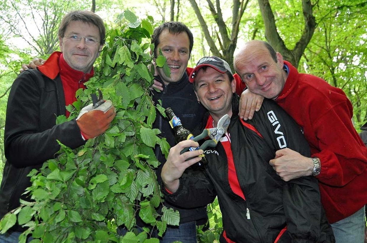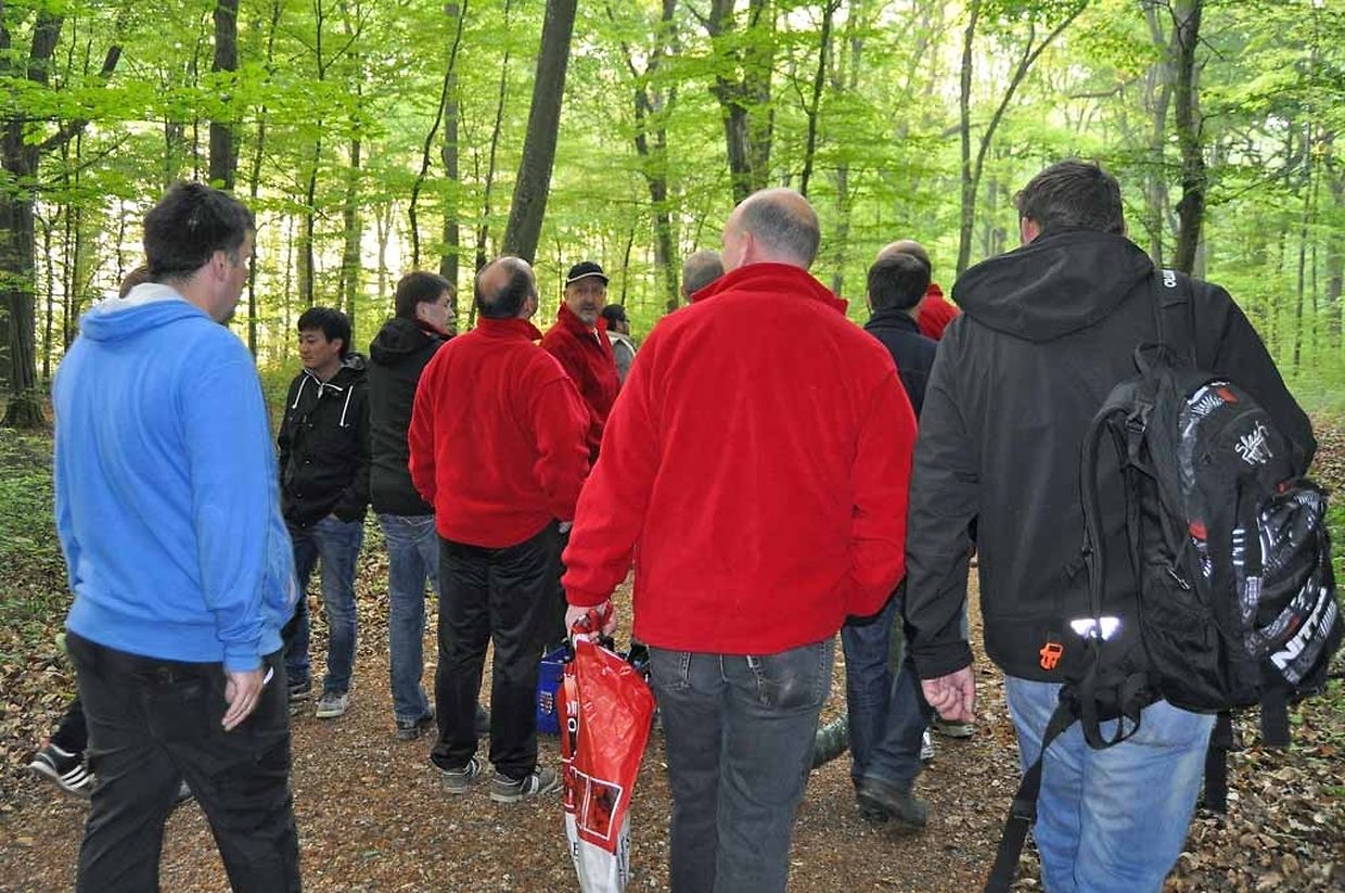 Déi ganz trei vum FC Monnerech haten et sech nees net huele gelooss an hu sech schonns um siwen Auer um Parking vum Monnerecher Stade Communal Rdv gi fir vun do aus an de Monnerecher Bësch ze fuere fir den traditionelle Meekranz ze maachen. Dat ware Leit vum Comité, vun der Jugendkommissioun, vum COOC, Spiller vun der zweeter Équipe a Pappe vu Jugendspiller. Am ganzen waren dat dëst Joer zwanzeg Leit.