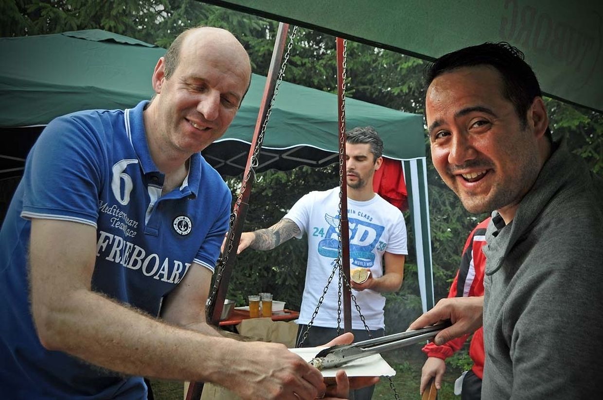 Vill Leit sinn der Invitatioun vum Club nokomm a sinn op den Terrain 1 komm. Si sinn net enttäuscht ginn. Eng Rei Spiller vun der éischter Équipe waren och mat Fra, Kanner oder Frëndin komm. Och Trainer a Co-Trainer ware mat der Famill do. De Manuel huet Sardinne gegrillt, de Perdro an de Luca ware fir d'Wuppen zoustänneg, de Refik an den Dzevad fir Cevapcici an de Willy fir d'Fritten. Jee, et war méi wéi genuch do fir jiddereen esouguer fir déi wou net komm sinn. Et war eng flott Ambiance a wierklech d'Méiglechkeet fir de Kontakt ze sichen. An natierlech war och nees Panini Sticker-Tausch ugesot. Do huet de liichte Reen deen am Laf vum Nomëtten nees zeréck komm ass net weider gestéiert. E flotten Dag fir jiddereen.