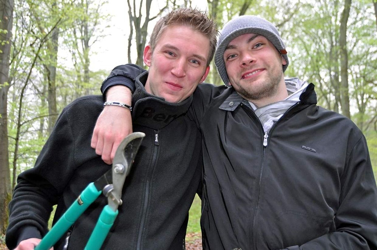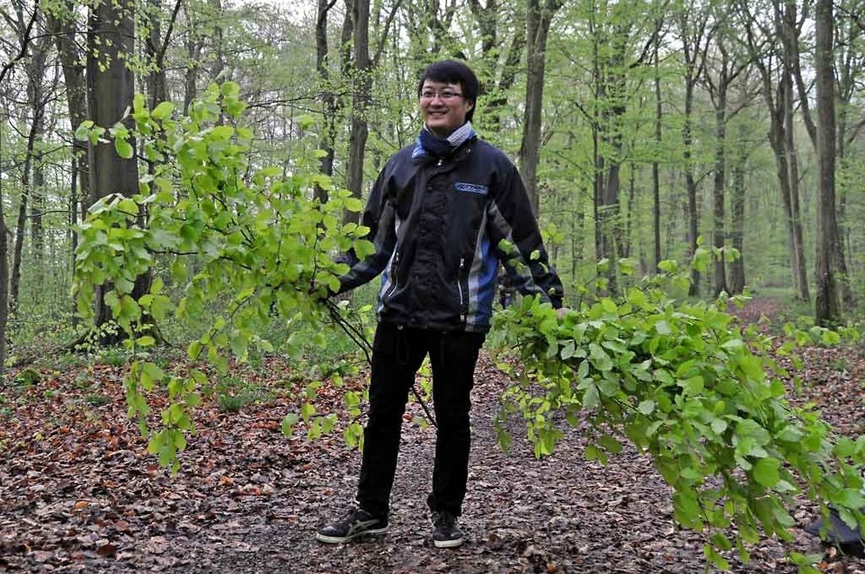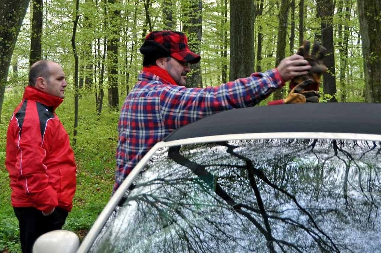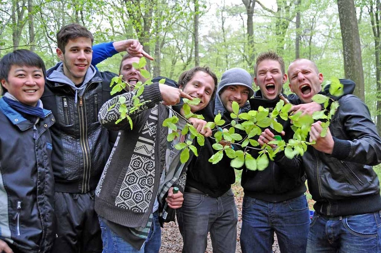 Um 7 Auer moies an der fréi hate sech eng 17 Leit um Parking vum Terrain 1 RDV ginn. Vun do aus ass een dann zesummen an de Bësch gefuer fir traditionelle Meekranz maachen ze goen.