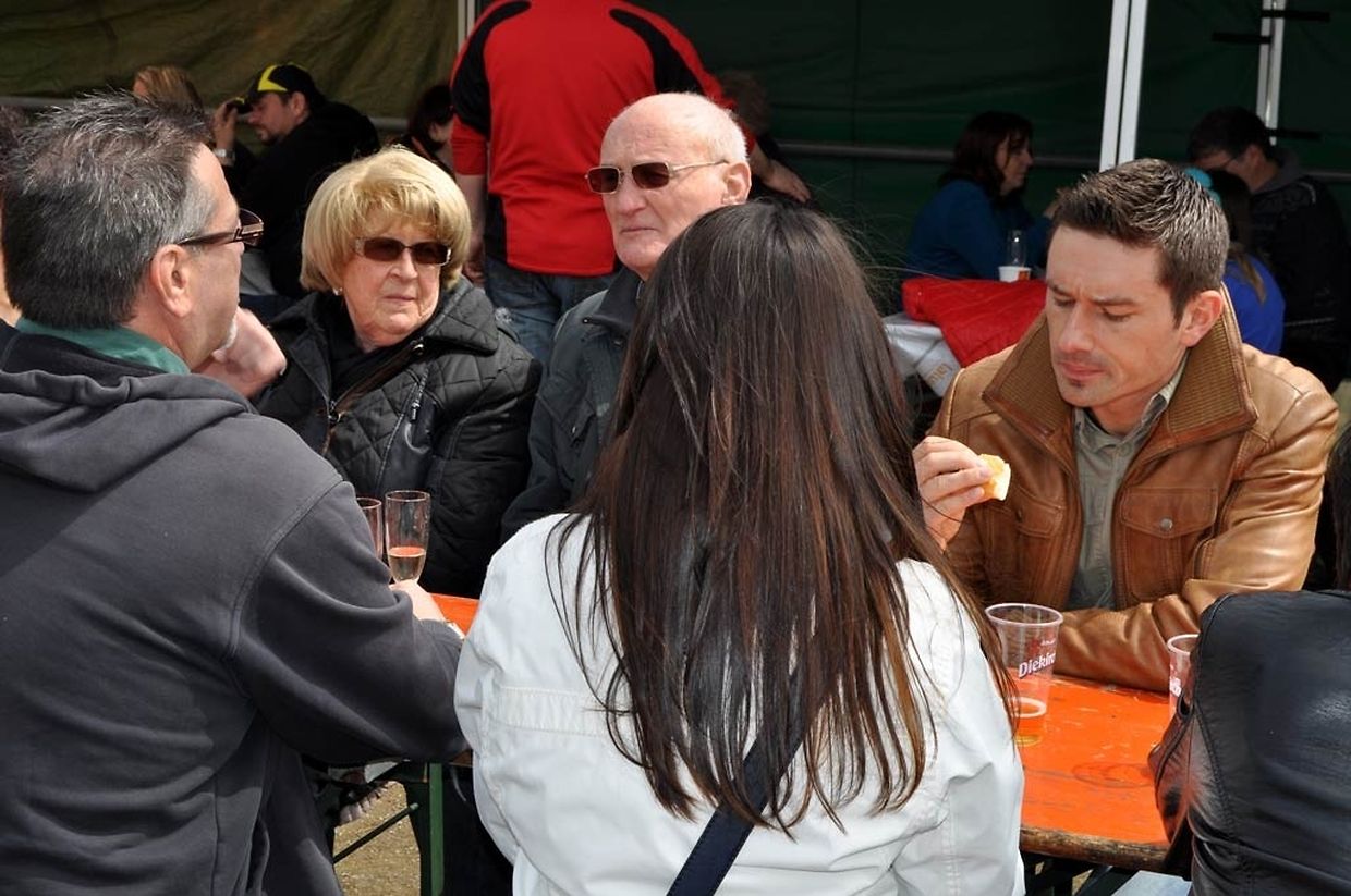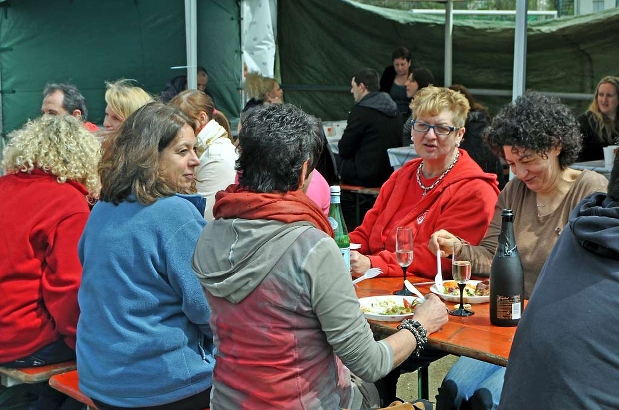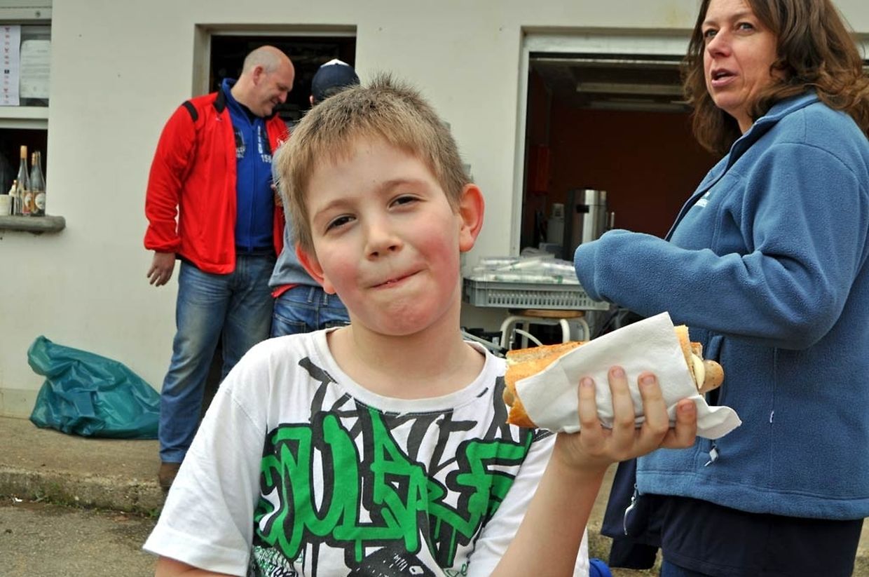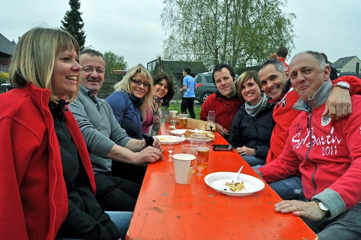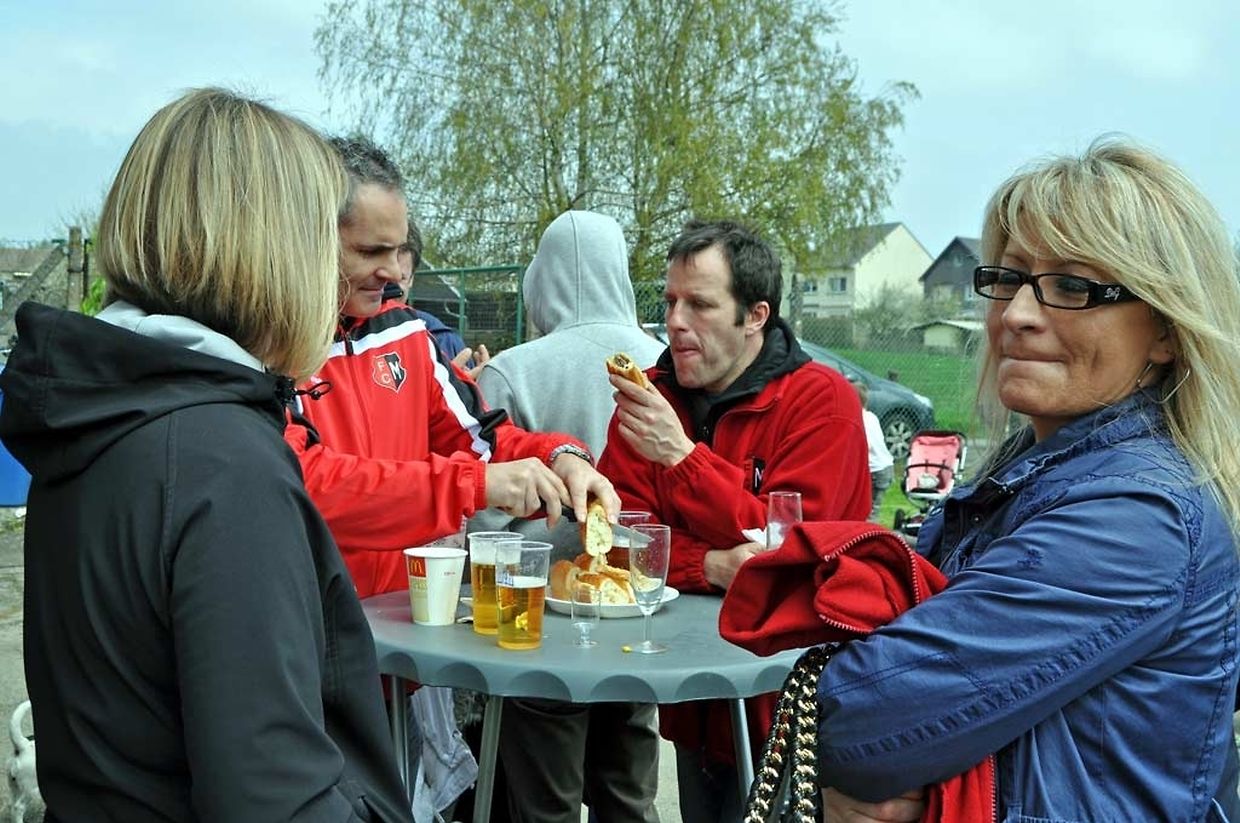 Mëttes war dann déi grouss 1. Mee-Feier um Terrain 3 ugesot. Et sinn nees eng ganz Rei Leit der Invitatioun vum Club nokomm, och wan leider nach laang net jiddereen do war. Déi wou do waren, hu profitéiert fir sech ganz relax mateneen ze ënnerhalen an e gudde Maufel z'iessen.