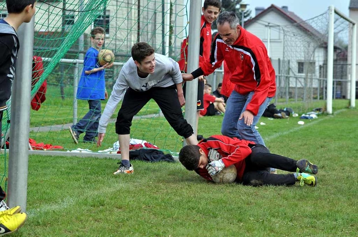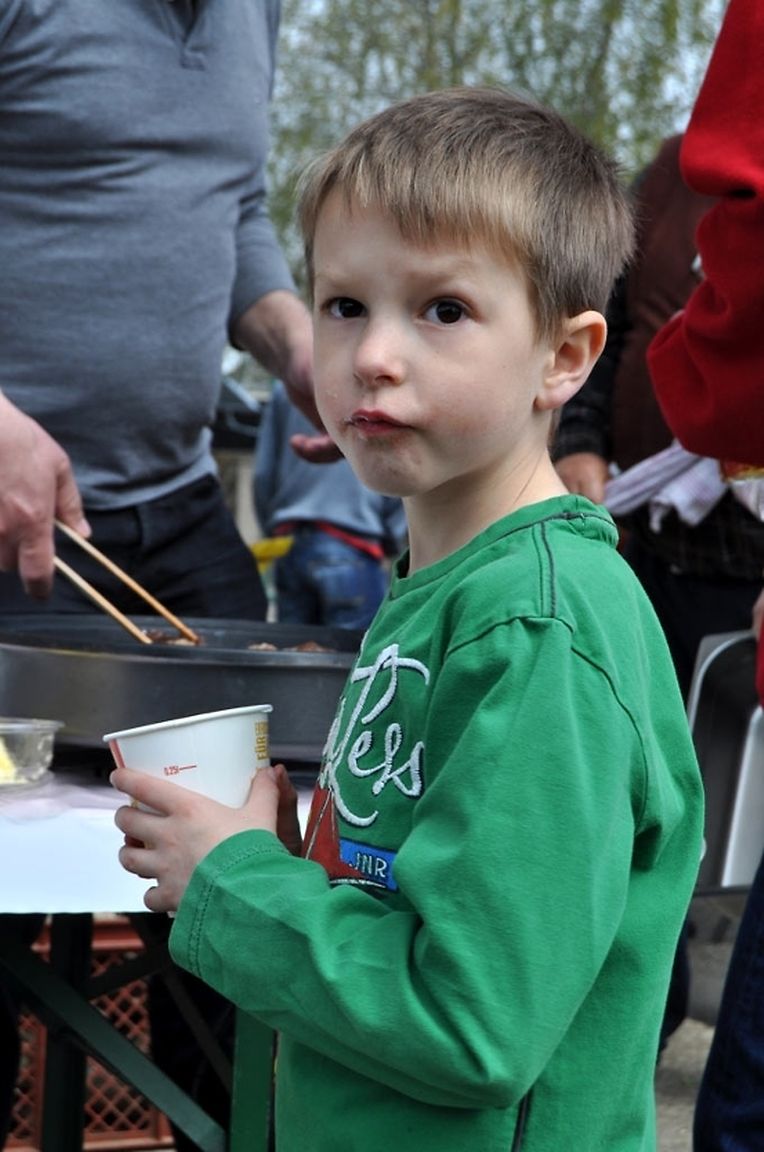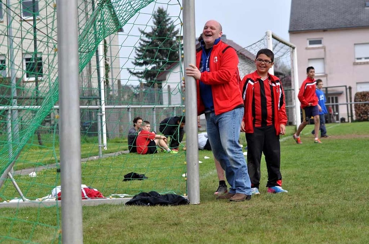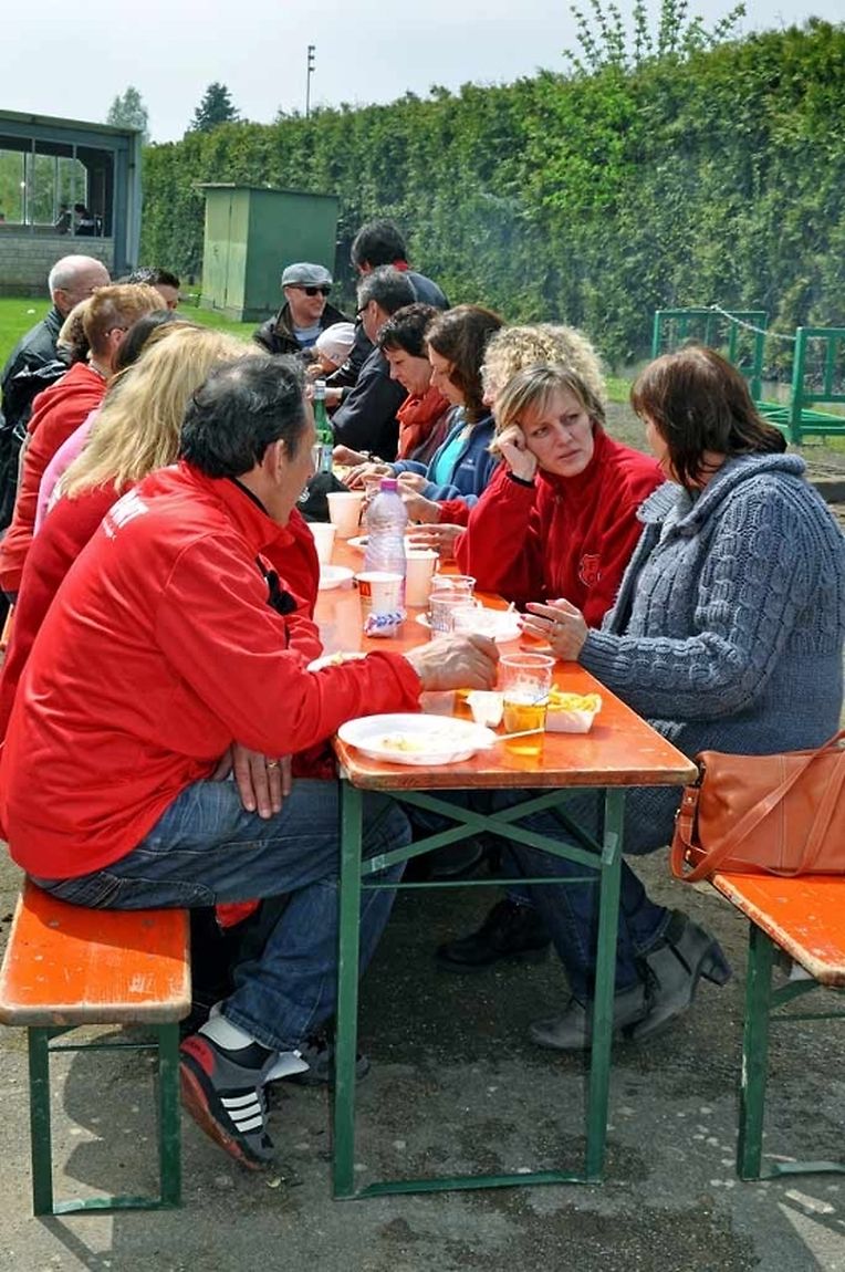 Jiddereen huet jiddefalls méi wéi genuch z'Iessen an ze drénke krut. D'Bouwe ware schnell mam Iesse fäerdeg an hu sech dann um Terrain ameséiert. Am Nu war Zäit verstrach an um 16 Auer war dann dee mat Spannung erwaarte Match: FC Monnerech Cadets - FC Monnerech Pappen.