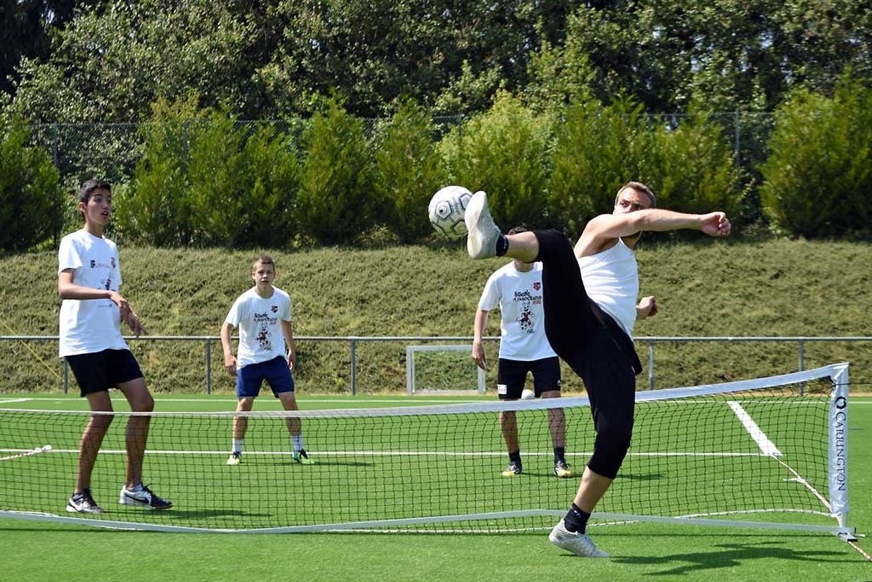 Eng flott Iddi haten Seniors Réserven vum FC Monnerech déi de Samschden den 11. Juli um syntheteschen Terrain deen éischten Foot-Tennis Cup organiséiert hunn. 16 Équipen haten sech ugemellt. Et sinn 6 Terraine mat niddrege Netzer opgeriicht ginn an et ass dräi géint dräi gespillt ginn. D'Regelen sinn ähnlech wéi beim Tennis. De Ball dierf ee mol am Feld opsprangen an dann dierf de Ball maximal dräi mol verlängert ginn befiert e am géignereschen Feld landen muss.