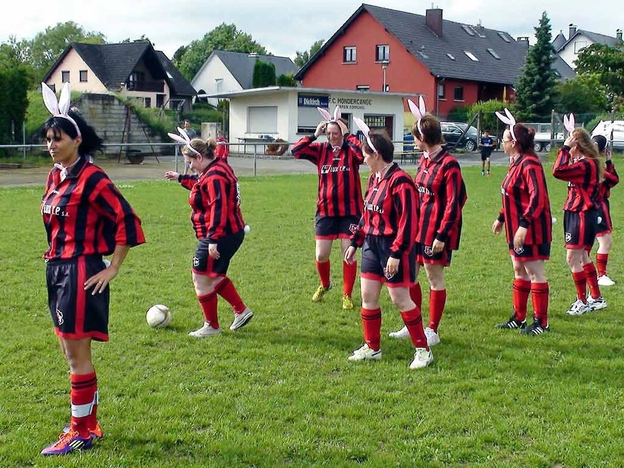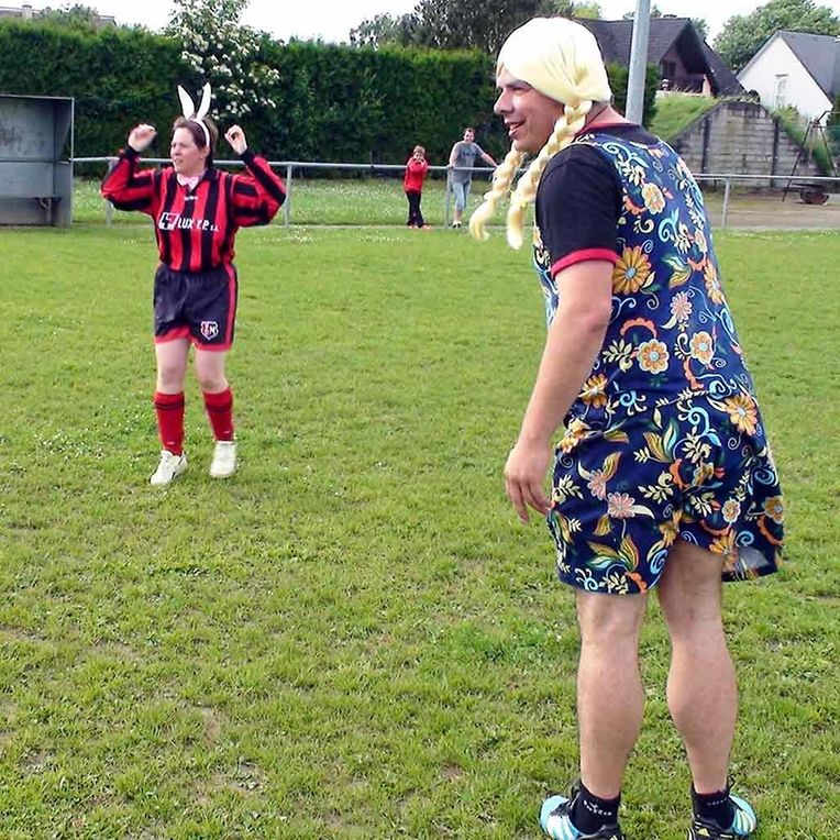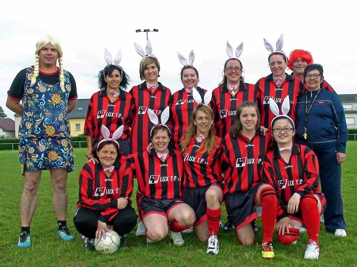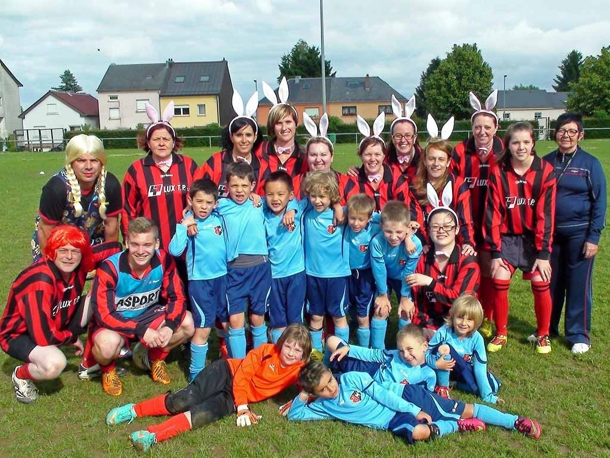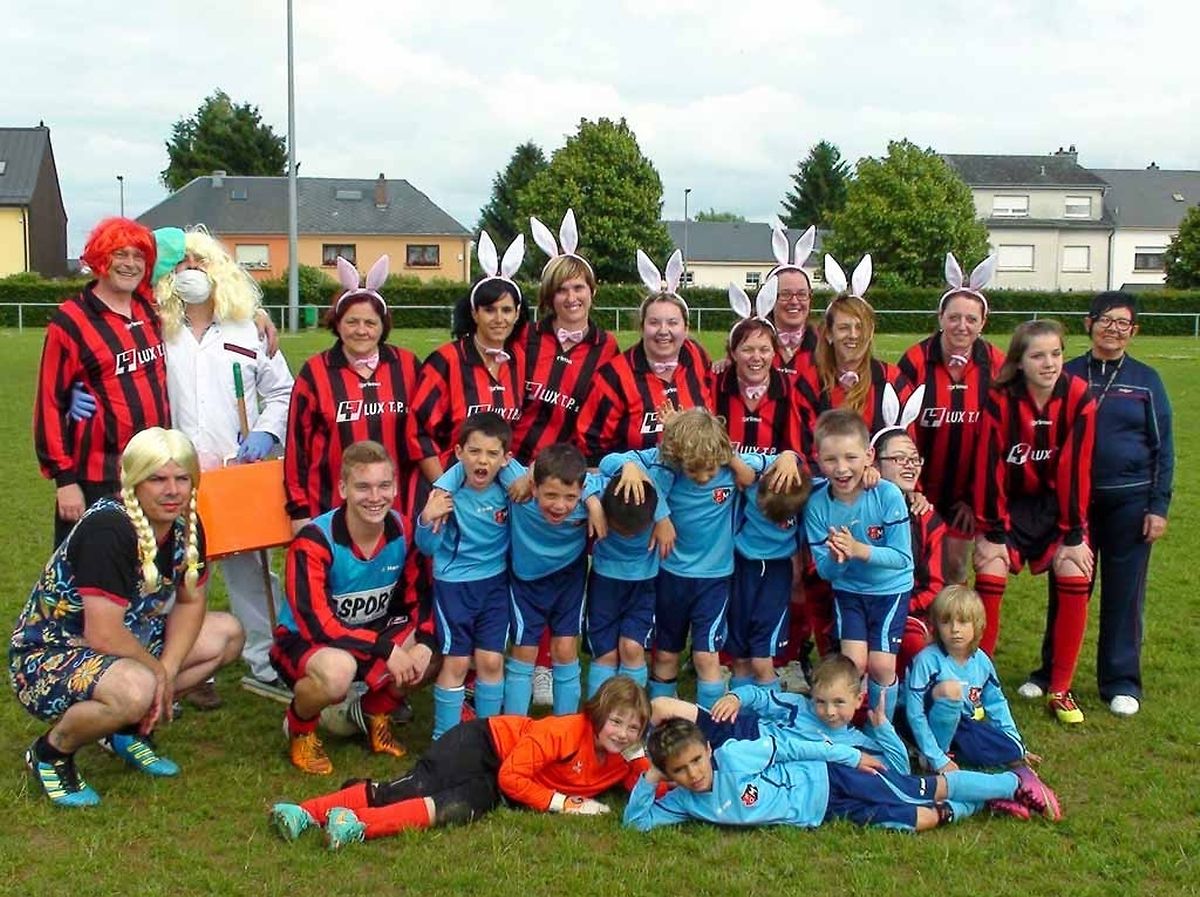 D'Mamme waren natierlech hell begeeschtert eng Kéier an der Monnerecher Uniform spillen ze dierfen. An dat och nach géint hir Kanner déi si déi ganz Saison duerch supportéiert hunn.