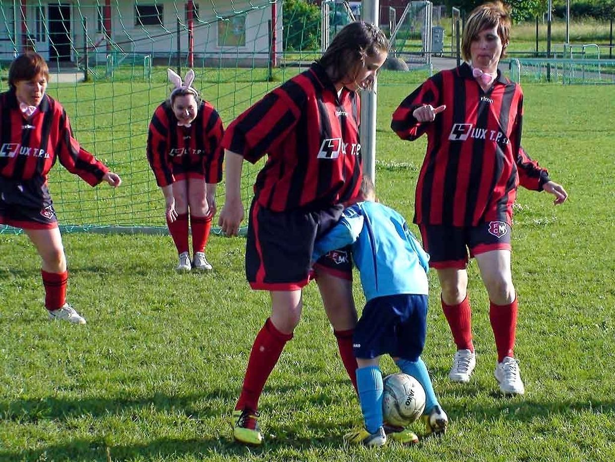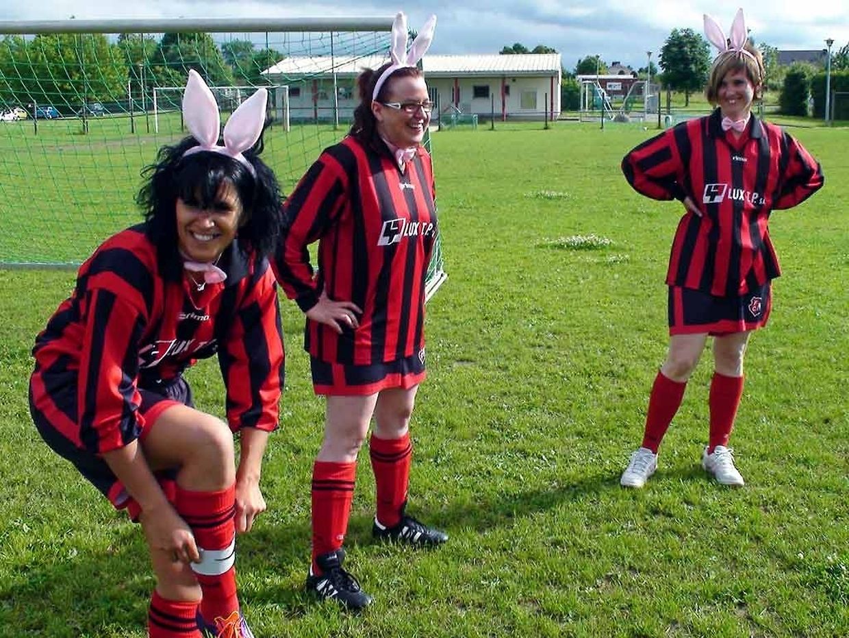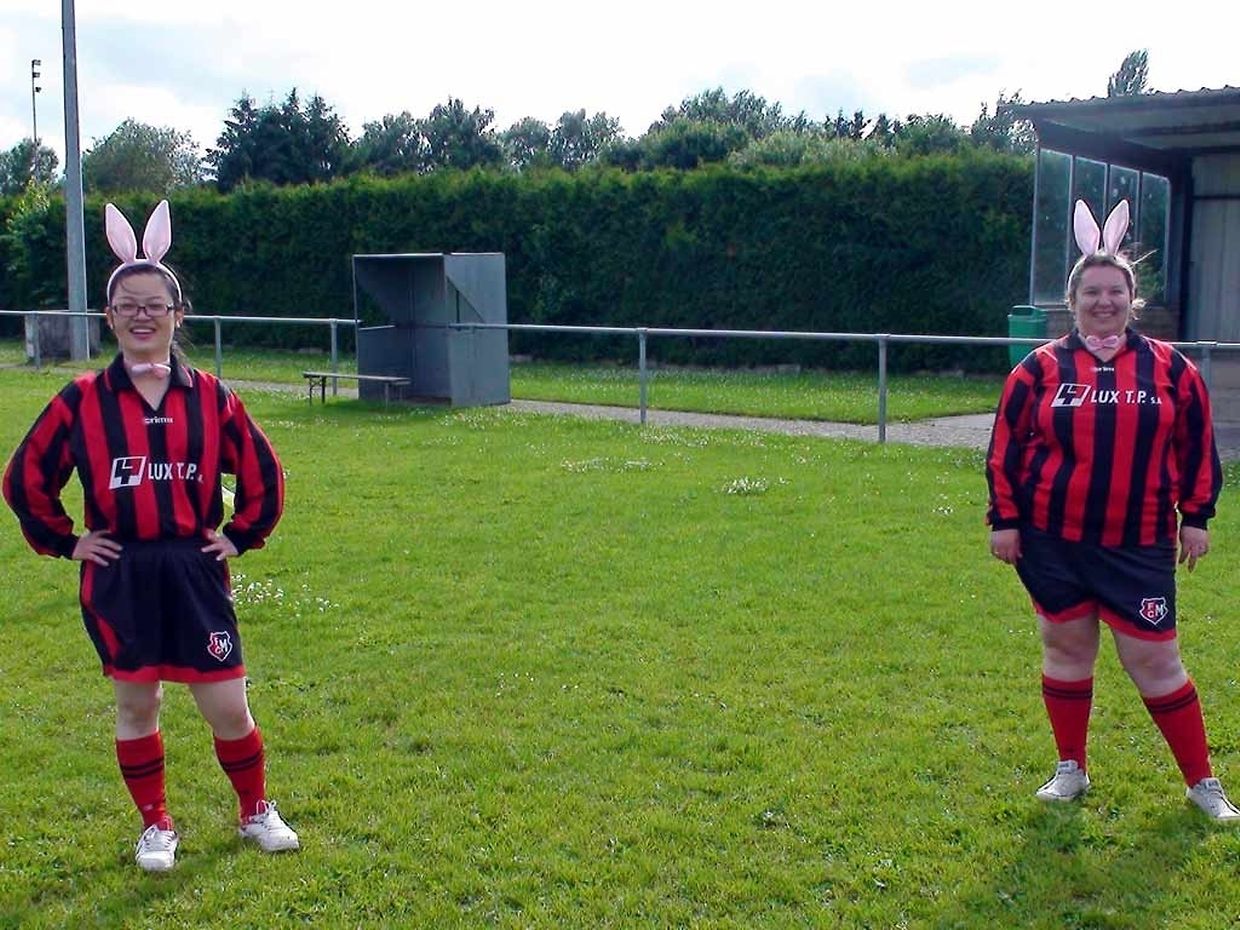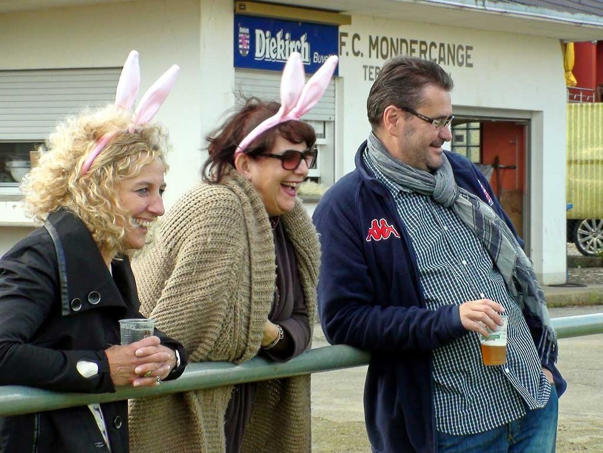 D'Mamme waren natierlech hell begeeschtert eng Kéier an der Monnerecher Uniform spillen ze dierfen. An dat och nach géint hir Kanner déi si déi ganz Saison duerch supportéiert hunn.