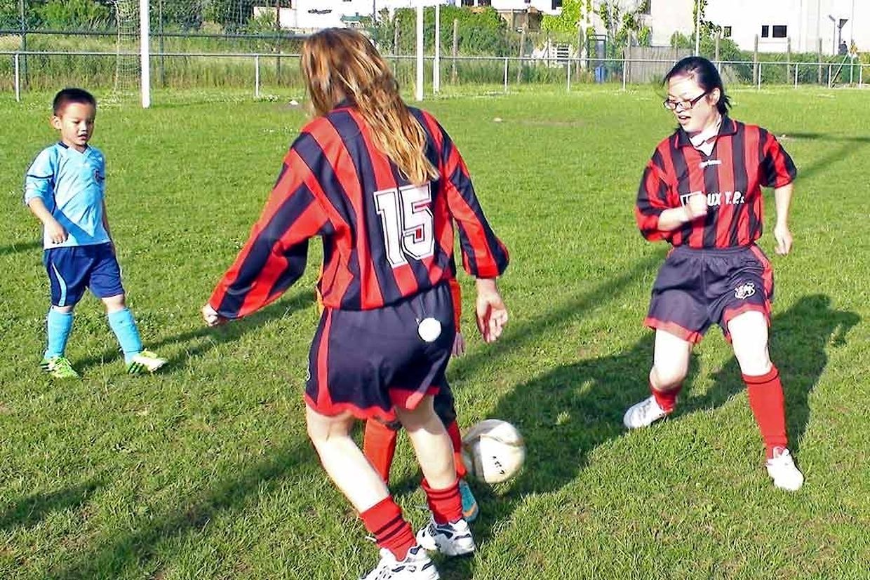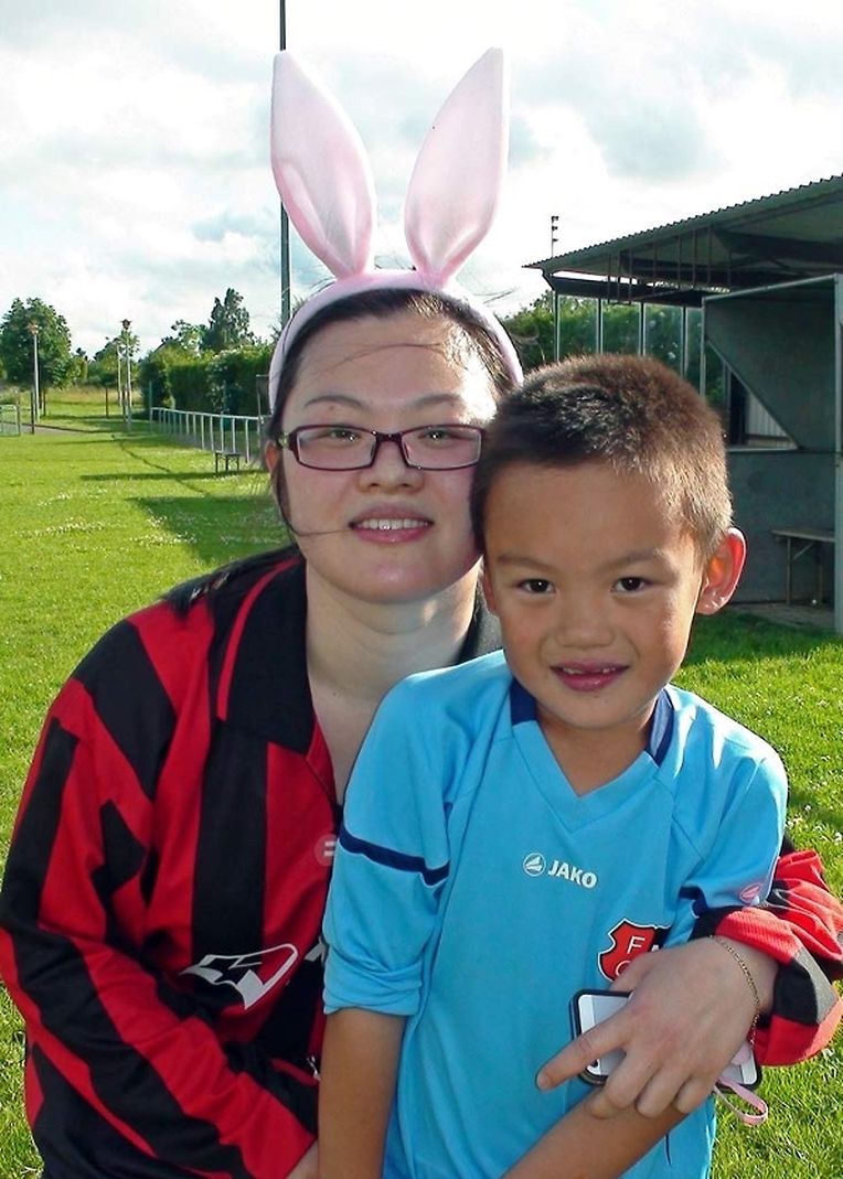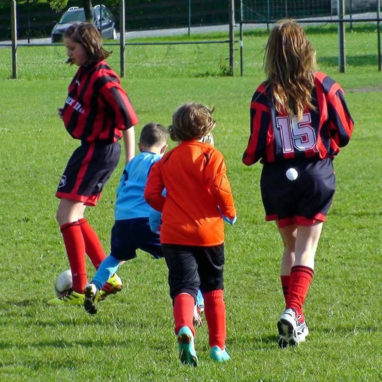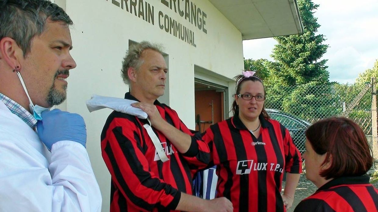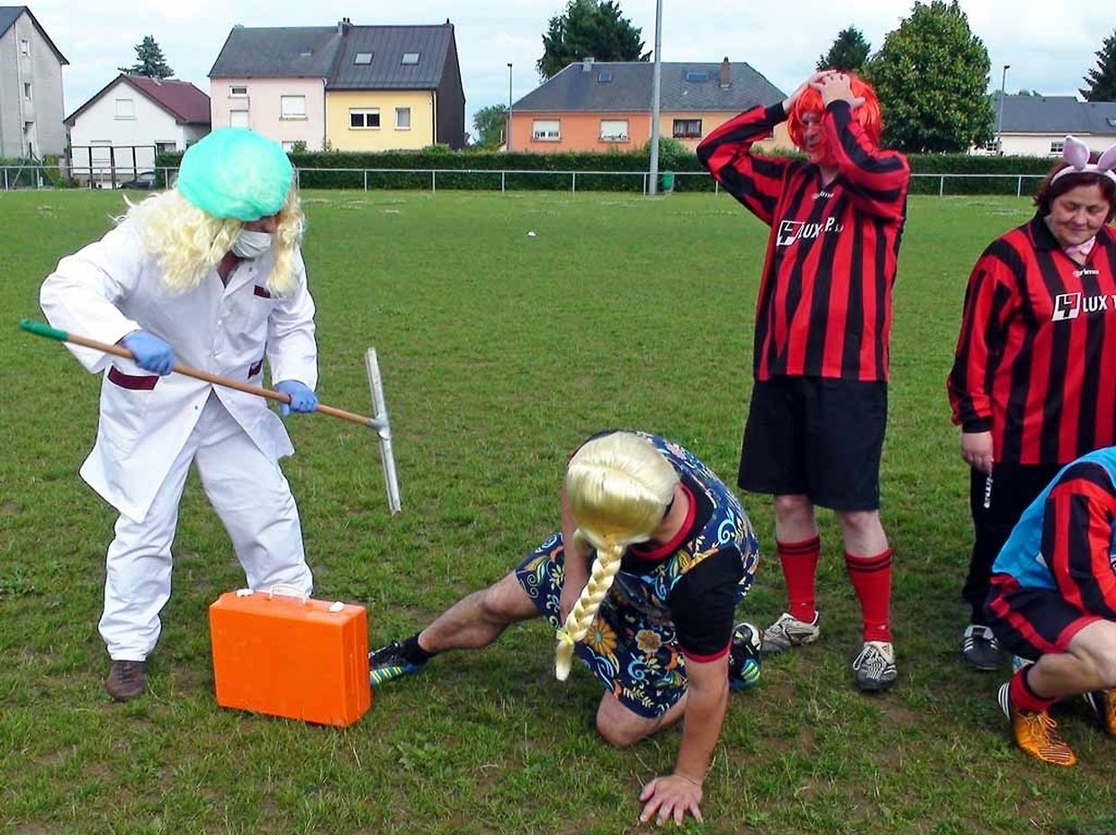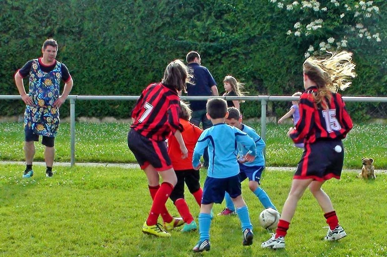 D'Mamme waren natierlech hell begeeschtert eng Kéier an der Monnerecher Uniform spillen ze dierfen. An dat och nach géint hir Kanner déi si déi ganz Saison duerch supportéiert hunn.