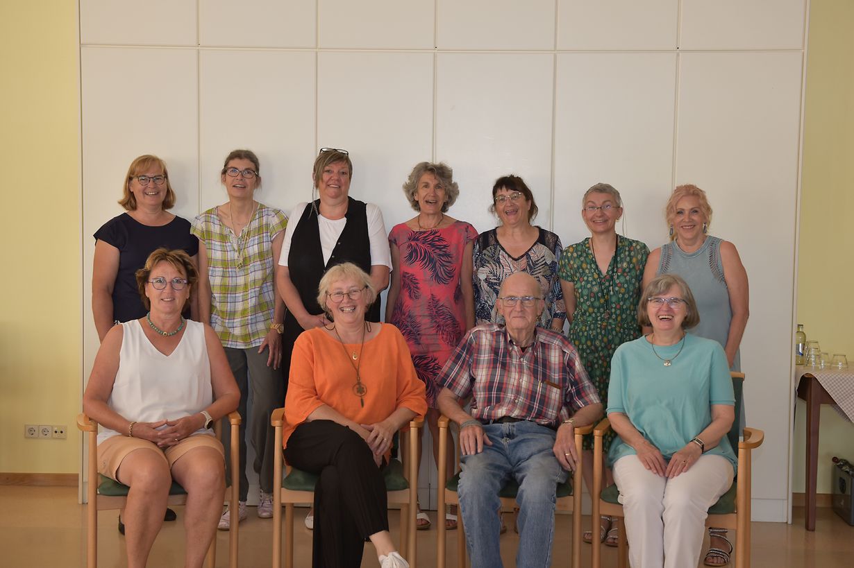 Text unter dem Bild: Déi nei Gediechtnistrainerinnen mat hirem Éierepresident an hirer Formatrice (vir rechts) Photo: Gilles Reyter