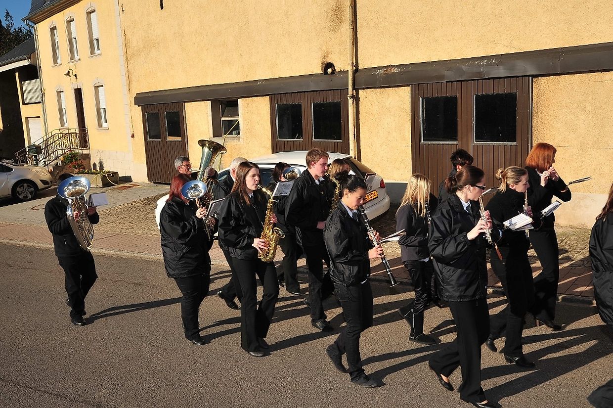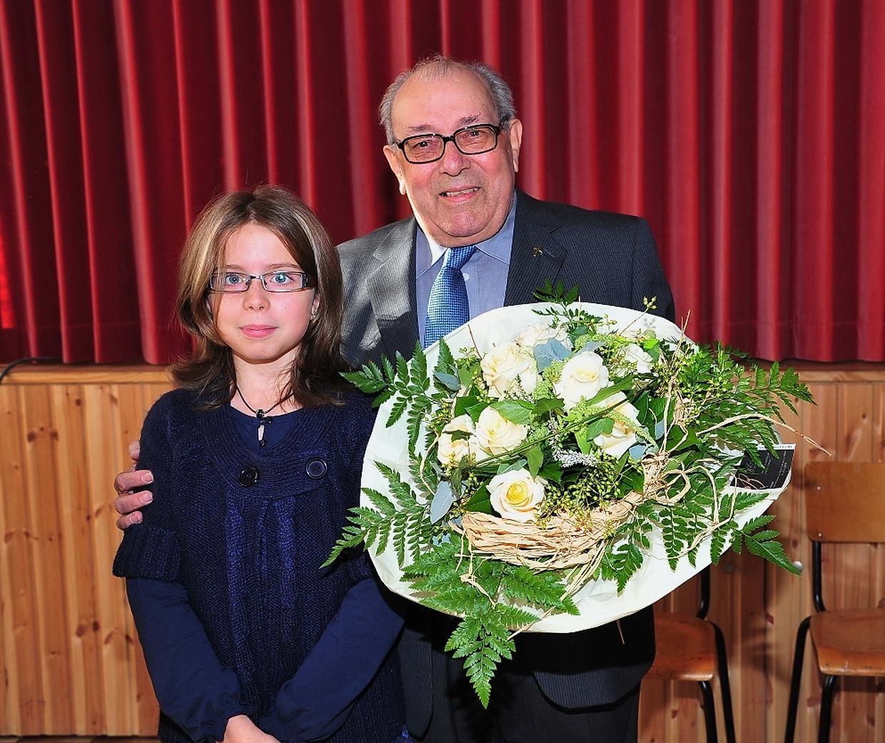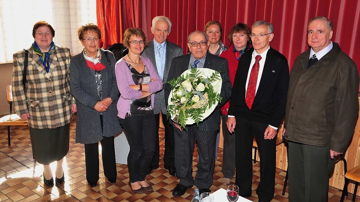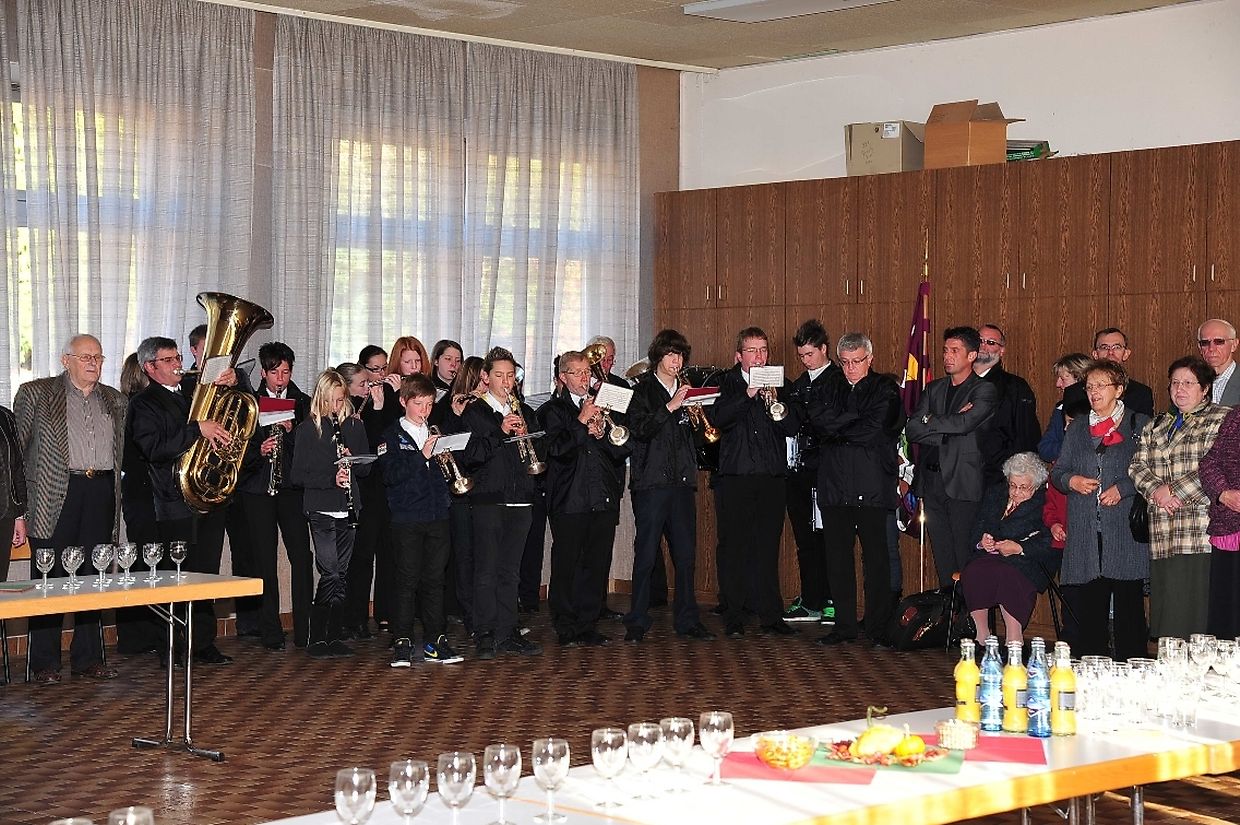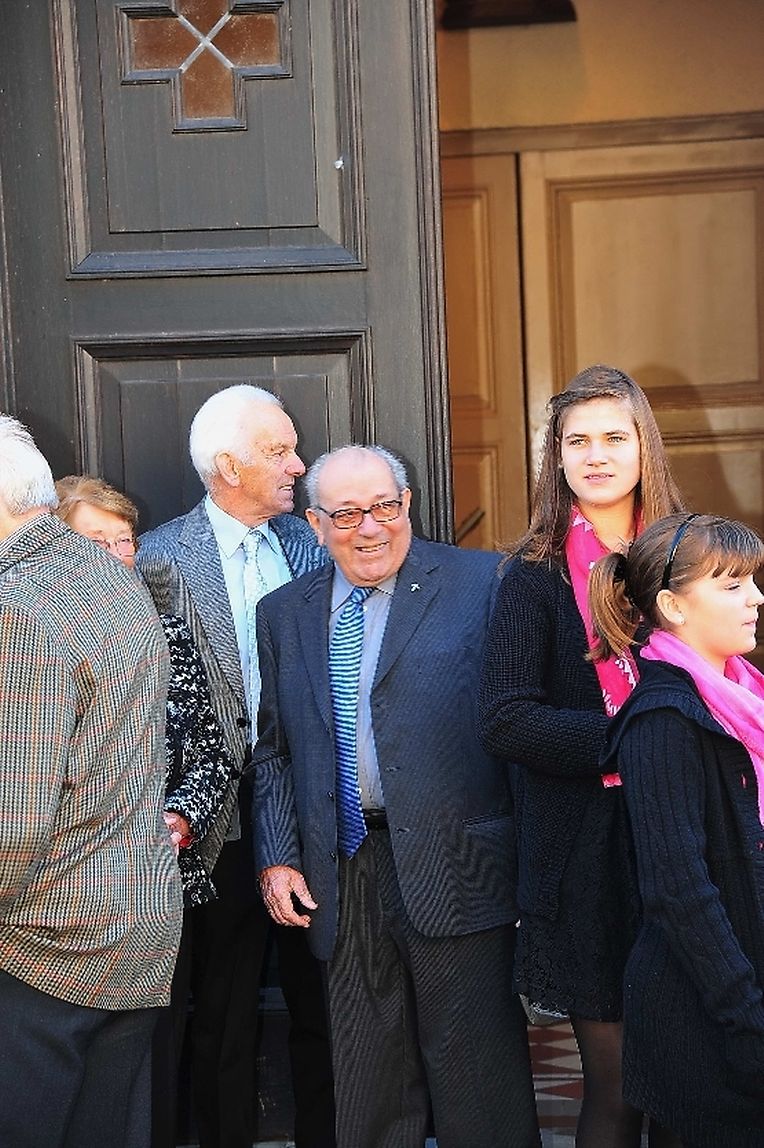 Im Festzug angeführt von der „ Nojemer Musik“ ging es dann zum offiziellen Empfang im Festsaal wo Anne Reding dem Jubilar gleich zu Beginn als Anerkennung einen Blumenstrauß überreichte. Im Anschluss an seine Gratulationen ging Kirchenratspräsident Camille Faber in seiner Ansprache auf das 50- jährige Wirken als Priester und Missionar im Dienste der Mitmenschen von Pater Alfred Nothum ein. Geboren im Jahre 1932 als ältester Sohn von fünf Kindern des Ehepaares Alphonse Nothum aus Ell und Marie Bodevin aus Nagem wurde Alfred Nothum nach seinem Studium mit der am 2. Juli 1961 in Rom zum Priester geweiht und Primiz wurde am 23. Juli 1961 in seinem Heimatort in Nagem gefeiert. Als Missionar wirkte Pater Nothum während 25 Jahren im Kongo um später im Kamerun tätig zu werden. Von 1993 bis 2000 wirkte er auf der katholischen Universität von Zentralafrika in Yahoundé, wo er eine Abteilung für Kirchenrechte gründete und auch leitete. Danach wurde Pater Nothum bis 2004 zum zweiten Direktor auf derselben Universität ernannt. Seine letzte Etappe war während vier Jahren als Priester in einer großen Pfarrei im Kamerun zu wirken. Camille Faber wünschte dem „goldenen“ Herz- Jesu- Priester in seinem wohlverdienten Ruhestand weiterhin Zufriedenheit sowie eine gute Gesundheit. Als Jubiläumsgeschenk wurde Pater Alfred Nothum für seine laufende Projekte im Kamerun mit einer Spende über 3 900 Euro seitens des Pfarrverbandes Ospern unterstützt. Weitere 2 000 Euro kamen seitens der „ Fraen a Mammen Gemeng Ell“ zusammen. Mit diesem Geld werde einerseits das nötige Material für ein bereits gebautes „ centre de santé“ angeschafft werden und andererseits die Finanzierung eines Geländewagens für seinen Nachfolger gesichert werden, der insgesamt 22 Dörfer in dessen Pfarrei betreuen muss. Herzlich und gerührt bedankte sich Pater Alfred Nothum bei allen Beteiligten für den freundlichen Empfang in seinem Heimatdorf Nagem, der ihm stets in guter Erinnerung bleiben wird. ( FOTOS: CHARLES REISER)