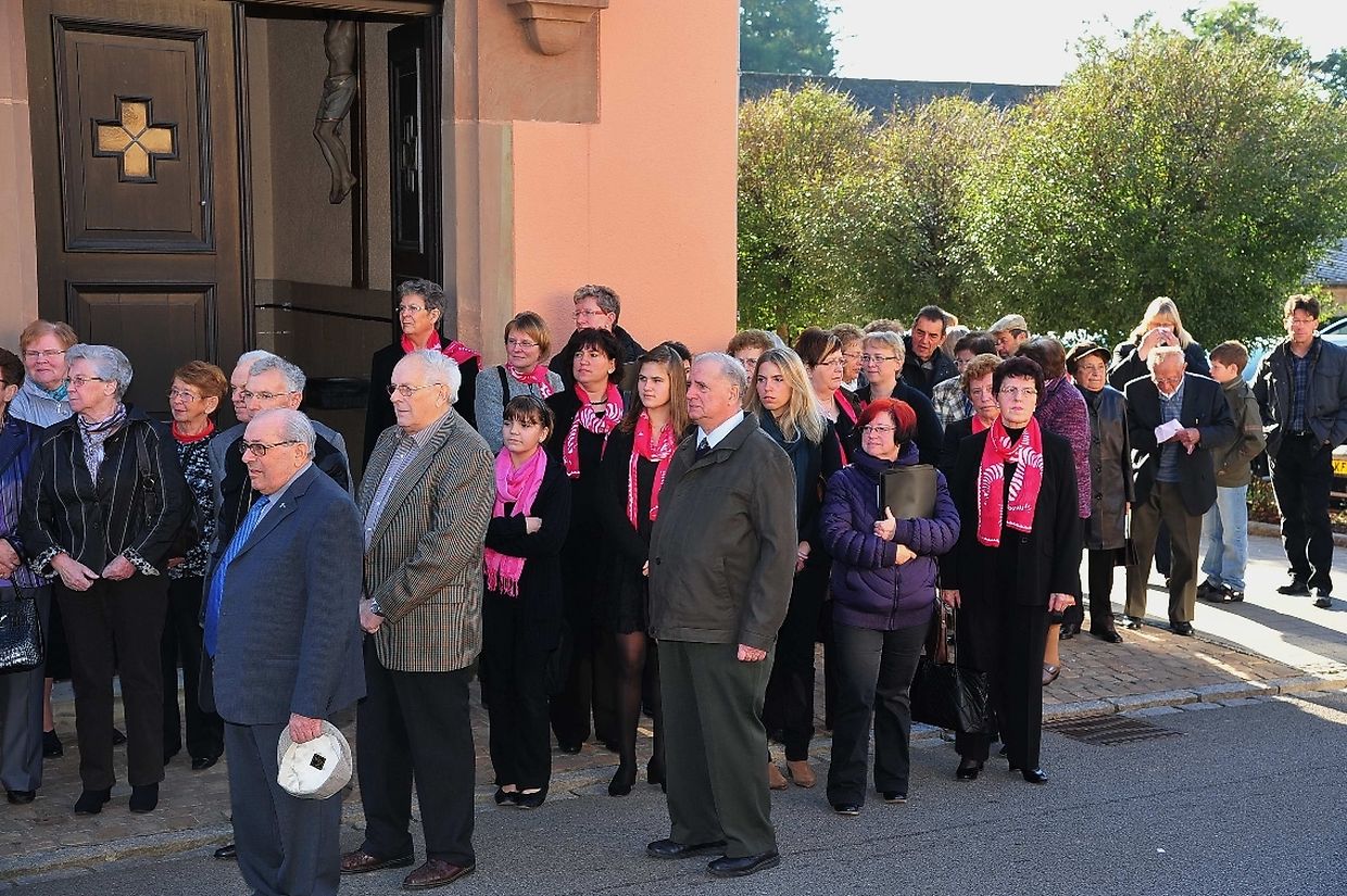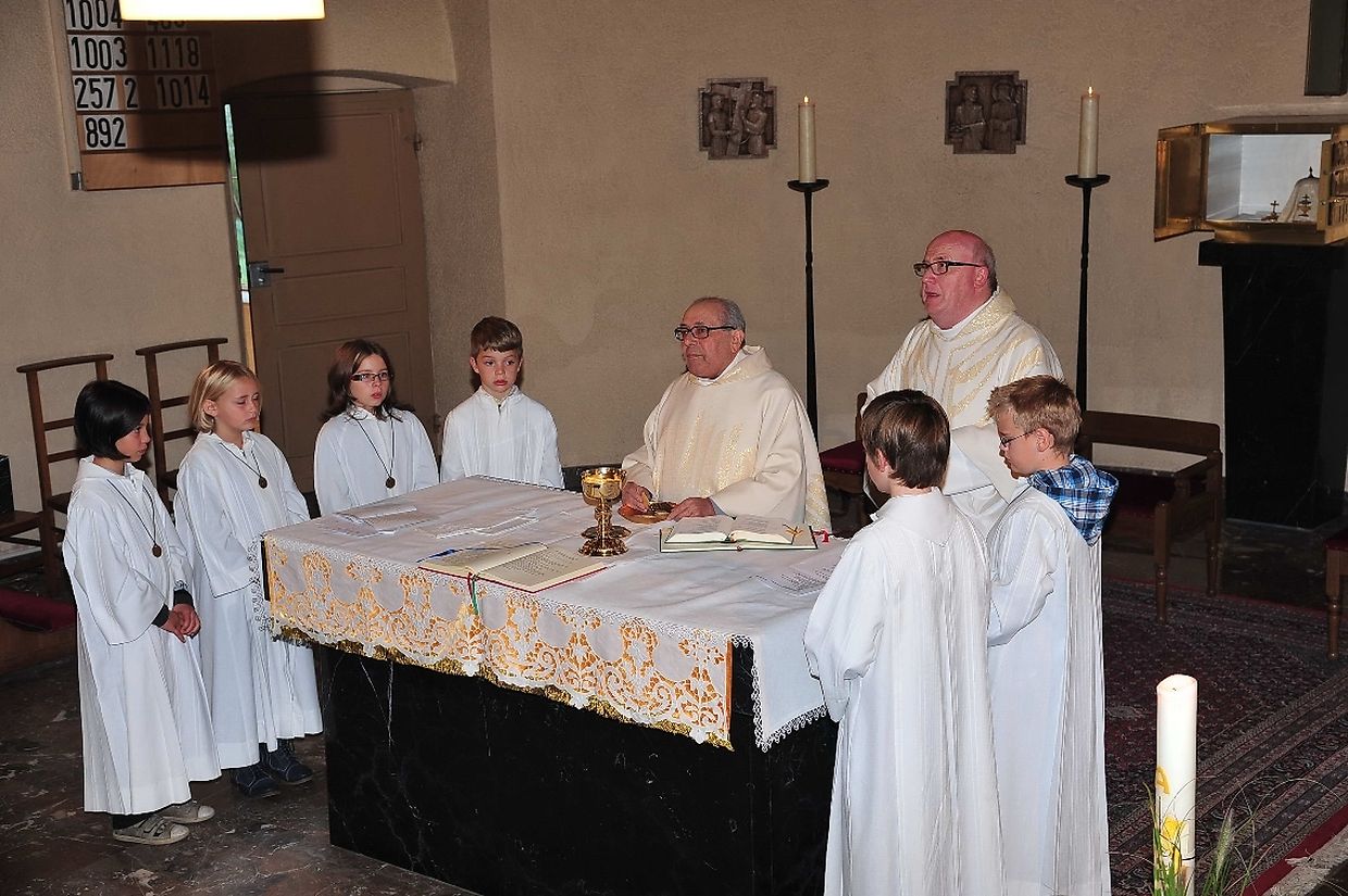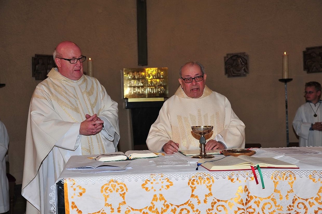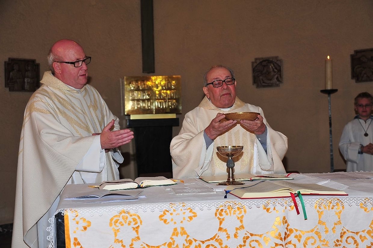 Die Mitglieder des Kirchenrates hatten zusammen mit Dechant Nico Jans zu dieser eindrucksvollen Feier eingeladen, zu der auch zahlreiche Ortsbewohner, Freunde, Vereinsmitglieder und Pfarrangehörige aus dem Pfarrverband Ospern der Einladung gefolgt waren. Die gesangliche Umrahmung der Eucharistiefeier hatten die Gesangvereine aus Ospern und Nagem unter der Leitung von Claude Reckinger mit Carlo Phillippe an der Orgel übernommen. Mit Pater Alfred Nothum konzelebrierte Dechant Nico Jans den Jubiläumsgottesdienst. In seiner Predigt ging Alfred Nothum auf sein 50- jähriges Wirken als Priester ein, wo er während 40 Jahren in Afrika verbrachte. In den Jahren 1953 bis 1968 studierte Pater Nothum in Rom und in Louvain um Priester und Missionar zu werden. Seit Februar 2009 lebt er im Kloster in Clairefontaine weil seine Gesundheit es ihm nicht mehr erlaubte nach Afrika zurückzukehren. An erster Stelle , so Nothum, muss ich Gott danken weil er mich dazu berufen hat Herz- Jesu- Priester und Missionar zu werden und dies im Dienste von allen Menschen und ebenfalls denjenigen in Afrika. Auch meiner Familie und euch allen von Nagem und aus den Nachbarpfarreien galt mein herzlicher Dank. Schon als Kind in Nagem habe ich meinen Beruf sehr früh entdeckt um in meinem späteren Leben, Priester zu werden und als Missionar in den Kongo zu gehen und es auch verstanden habe, dass wir nur glücklich und zufrieden werden können, wenn wir wie Jesus im Evangelium verkündete: Gott geben, was Gott gehört. Zum Schluss möchte ich den Herz- Jesu- Priester in Clairefontaine sowie den vielen Afrikaner für ihre Freundschaft sowie ihre Bereitschaft in den Pfarreien, Kommissionen und auf der Universität meinen aufrichtigen Dank aussprechen. Dechant Nico Jans seinerseits bedankte sich bei allen die dazu beitrugen, dass diese Jubiläumsfeier in Nagem zustande kam.