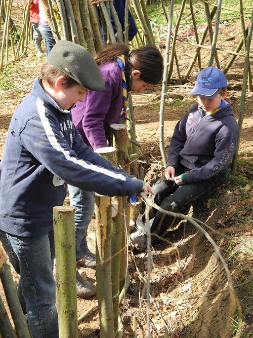 Wéi mywort.lu jo scho viru kuerzem bericht huet, sinn d'Beggener Guiden a Scouten amgaangen um Neihaischen e Systeme aus Hielen an Tunnellen opzeriichten. D'Material dat dofir benotzt gëtt ass lieweg. Weede ginn geschnidden, geflecht a sollen, wann alles riicht leeft, duerno Wuerzele schloen.