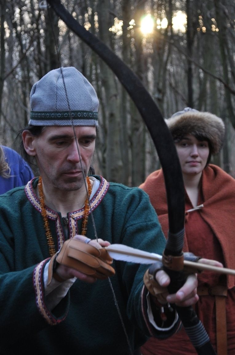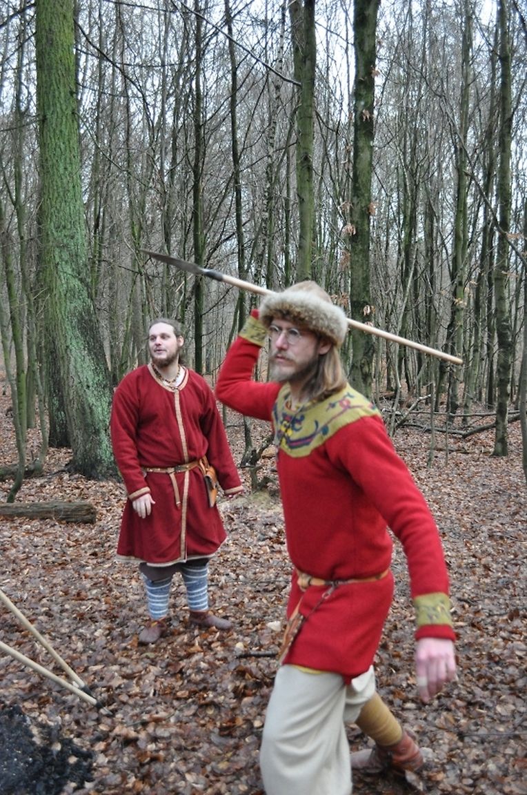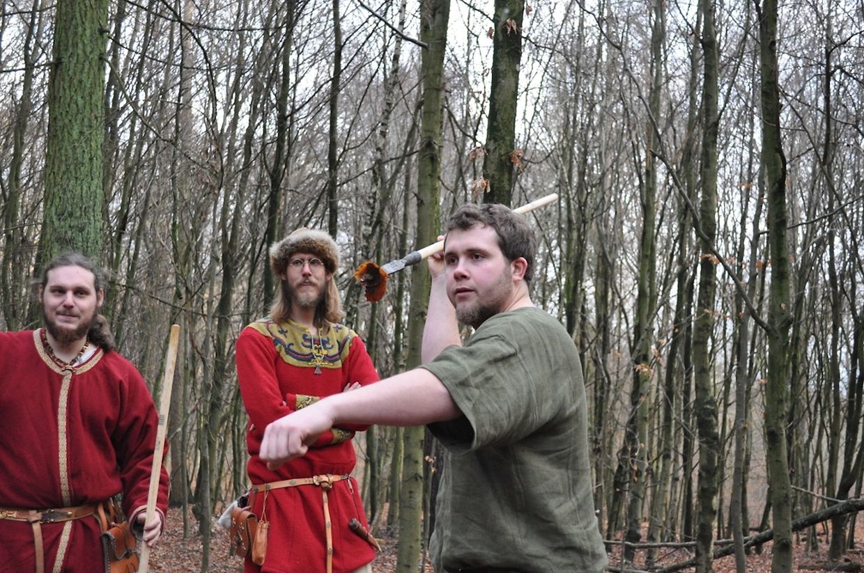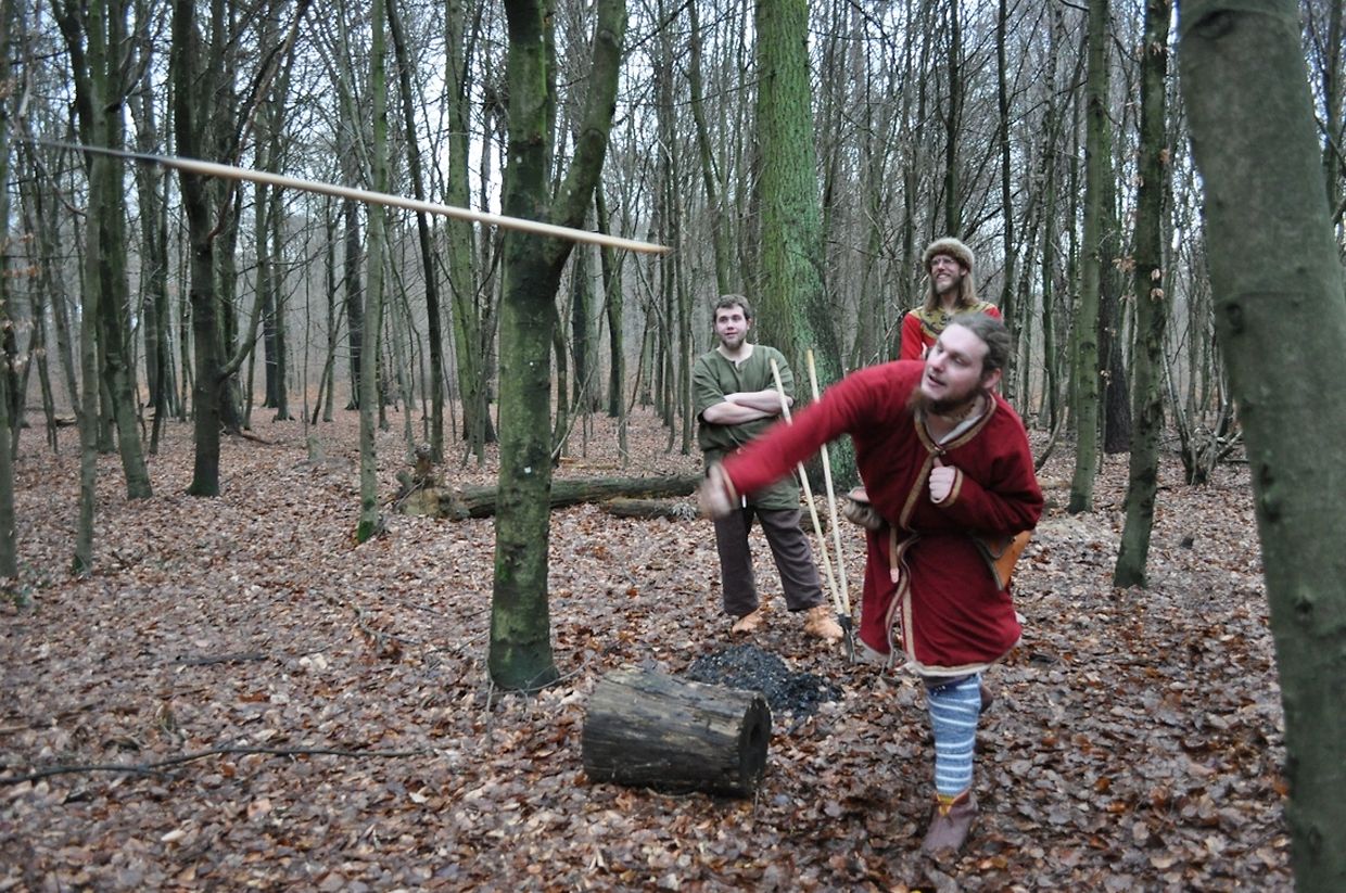Wie immer versammlten sich unsere Mitglieder vornehmlich in Gewandung und Ausrüstung des Frühmittelalters und der Antike bereits ab Freitag im Keltenhaus um ein Wochenende lang mit den Mitteln von damals zu leben. Besonderes Augenmerk wurde diesmal auf historisch korrektere Schlafausrüstung gelegt, also bspw kein moderner Schlafsack, Isomatte oä, sondern stattdessen Felle, Wolldecken und Strohmatratzen. Einer der Teilnehmer, ein Wikinger aus dem Haithabu des 10 Jhrdts, hatte gar eine Replik des reich verzierten Oseberg Bettes dabei.