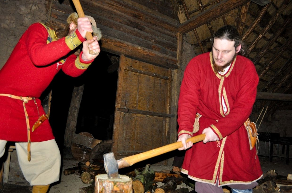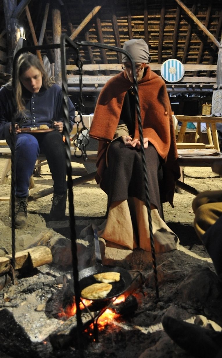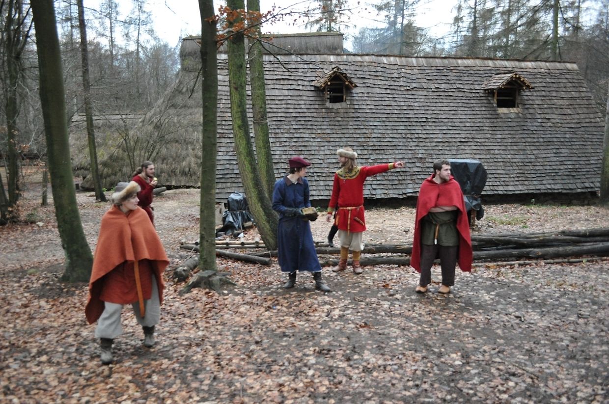 Wie immer versammlten sich unsere Mitglieder vornehmlich in Gewandung und Ausrüstung des Frühmittelalters und der Antike bereits ab Freitag im Keltenhaus um ein Wochenende lang mit den Mitteln von damals zu leben. Besonderes Augenmerk wurde diesmal auf historisch korrektere Schlafausrüstung gelegt, also bspw kein moderner Schlafsack, Isomatte oä, sondern stattdessen Felle, Wolldecken und Strohmatratzen. Einer der Teilnehmer, ein Wikinger aus dem Haithabu des 10 Jhrdts, hatte gar eine Replik des reich verzierten Oseberg Bettes dabei.