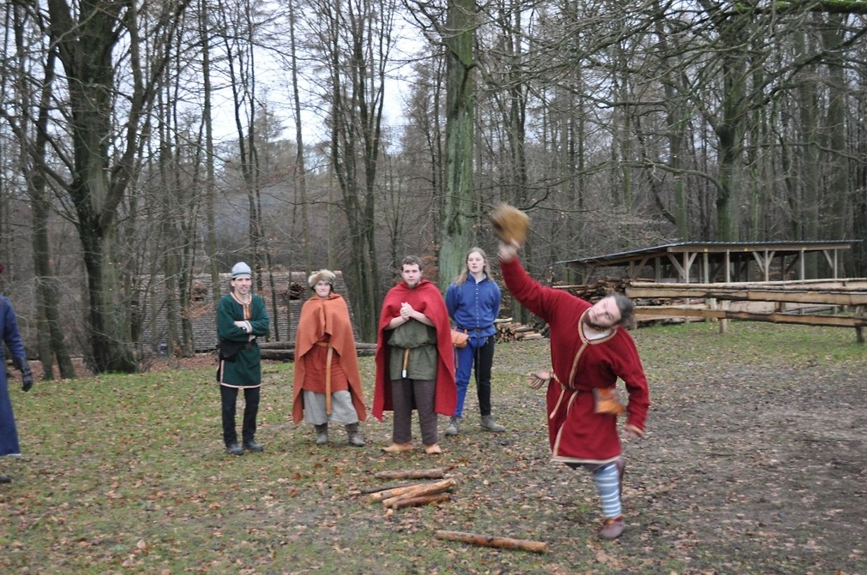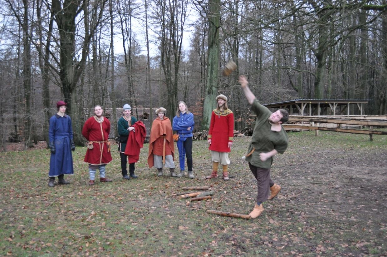 Im Gegensatz zu den letzten Jahren fand diesmal kein Training im Umgang mit Schwert und Schild statt, sondern sogenannte “Viking Games”. Hierzu ließen wir unsere Mitglieder in verschiedenen Kategorien gegeneinander antreten die da wären: