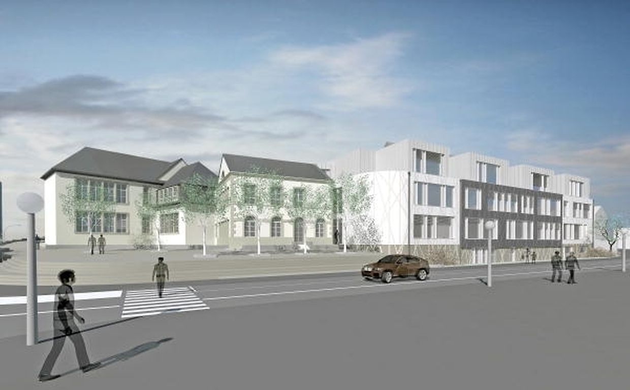 Mit dem Umbau respektiv Neubau des LTPS Süden („Lycée technique pour professions de santé“) wird der Niederkerschener Dorfkern ein neues Gesicht erhalten.