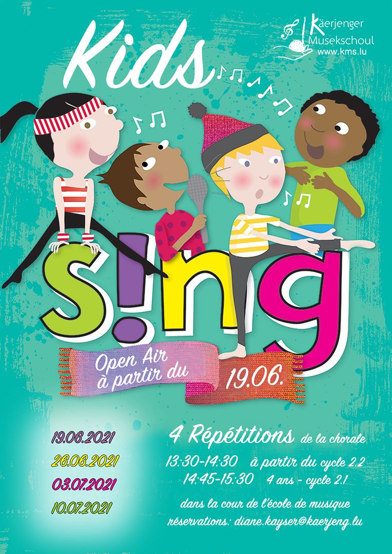 Wann är Kanner gäre sangen, dierfen si ab dem 19.06. 4 Mol Samschdes an den Haff vun der Schoul bei eiser Kannerchorale matmaachen, déi do wäert Open Air Prouwe maachen. Fir dëse flotte Projet kënnt dir iech per Mail op diane.kayser@kaerjeng.lu umellen.