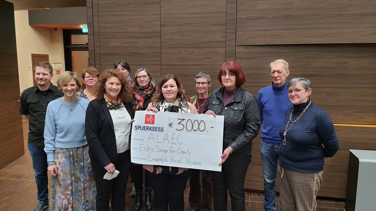 Dies ermöglichte es Vivace, die grosszügige Summe von 3.000 € an den Verein für „Häerzkrank Kanner zu Lëtzebuerg“ (ALAEC) zu spenden.