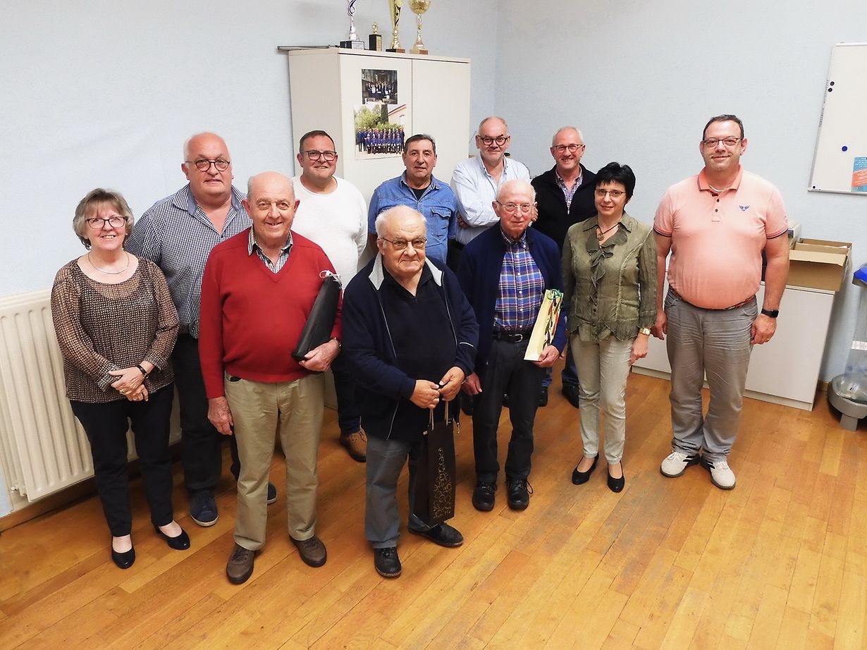 Niederpallen: Pandemiebedingt und nach fast einem Jahr ohne jegliche Aktivitäten waren die Vorstandsmitglieder des „ Männerkouer Aterdaul“ neulich im Festsaal von Niederpallen sehr gespannt, wieviel aktive Sänger nach dieser langen Zeit an der diesjährigen Jahreshauptversammlung präsentieren würden und noch Interesse zeigten weiterhin im Männerchor, aktiv dabei zu sein. Ganz erfreut zeigte sich Chor-Präsident Marc Sauber in seiner Willkommensansprache dann für die Präsenz der fast komplett erschienen Mitglieder. Im Anschluss an eine Minute der Stille, wo ganz besonders an den verstorbenen Sänger Jean Faltz erinnert wurde, zollte der Vorsitzende, Respekt und Anerkennung an alle Vereinsmitglieder die während des vergangenen Jahres ohne jegliche Aktivitäten, ihre Treue zum Männerchor, trotzdem voll und ganz zum Ausdruck brachten. Man zeige sich in naher Zukunft schon ganz zuversichtlich sich den Gesangproben zu widmen um die Stimmen wieder auf Vordermann zu bringen. Aus dem Aktivitätsbericht von Sekretärin Marie- Anne Kugener -Goethals ging hervor, dass das Jahr 2019 mit zehn Aktivitäten und Ausgängen, darunter die gut besuchten Galaabende in Folscheid, gut gefüllt war. Jedoch mussten im Jahr 2020 außer den vier Vorstandssitzungen, pandemiebedingt alle geplanten Aktivitäten abgesagt werden. Finanzverwalter Paul Mehlen legte gleich zwei detaillierte Kassenberichte vor, die auch als einwandfrei bestätigt wurden. Nach der problemlosen Entlastung des Vorstandes, zeigte sich Bürgermeister Henri Gerekens sehr begeistert vom Männerchor aus dem Atertdaul mit all ihren Auftritten trotz der sehr schwierigen Zeit was trotzdem stets auch eine Bereicherung im Kulturleben des Redinger Kantons darstellt. Nach seiner Zusage zur weiteren Unterstützung und der Hoffnung auf eine hoffnungsvolle und erfolgreiche Zukunft, bestätigte Dirigentin Adriana Mitù ihre Zufriedenheit und freute sich schon im Vorfeld den Männerchor auch in Zukunft auch weiterleiten zu dürfen. Auch Caroline Plekkepoel wird dem Chor in Zukunft als Pianistin weiterhin zur Seite stehen. Ferner gab Präsident Marc Sauber bekannt, dass der „Männerkouer Atertdaul“ sein 25. Vereinsjubiläum im Kader des Galakonzertes am 1. und 2. April 2022 in Folscheid in Zusammenarbeit mit dem Männerchor aus Böwingen/Attert auch gebührend feiern wird. Der Abschluss der Versammlung bildete die Ehrung verschiedener Sänger anlässlich ihres Wiegenfestes. Mit einem „Happy Birthday“ wurden folgende Jubilare, geehrt: Nicolas Meis (80 Jahre). Jim Reding und Tid Schroeder (85). Ferd Peschon (85) der dieser Versammlung nicht beiwohnen konnte, wurde ebenfalls gratuliert. Der 23-köpfigen Sängerschar gehören folgende Vorstandsmitglieder an: Marc Sauber (Präsident); Romain Mersch (Vizepräsident); Finanzverwalter: Paul Mehlen. Beisitzende Mitglieder sind: Marco Kugener, Carlo Lampertz und Edy Loesch. Als Kassenrevisoren bleiben Julien Birkel und Charles Reiser weiterhin im Amt. (CR) (FOTO: Charles Reiser) BZ: Jubilarehrungen beim Männerkouer Atertdaul gehören stets zur Tradition .