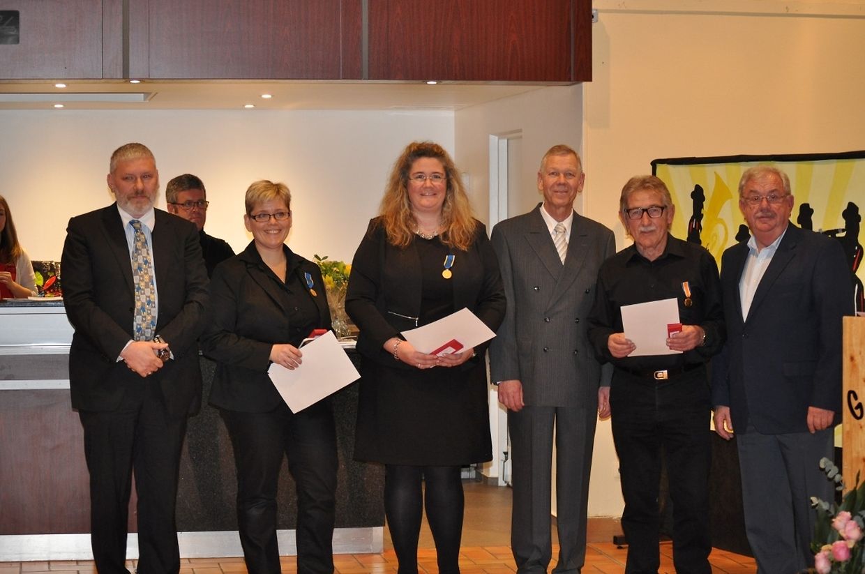 Läschten Cäciliendag haat d'Hueschterter Musek zu enger Rees duerch Amerika gelueden. Ugefaangen huet d'Jugendmusek vun der Fanfare ënnert der Leedung vun hirem dynameschen Dirigent Rainier Radelet. Mam Frank Sinatra sengem "My Way", dem Ben E. King sengem "Stand by me" a Queen hirer "Bohemian Rhapsody" hunn si de Publikum op e flotten Owend agestëmmt. Matt Stécker vu Broadway-Legende wéi dem George Gershwin, dem Glenn Miller oder dem Filmkomponist John Williams huet d'Hueschterter Musek dann de Publikum op den Héichpunkt vum Owend vierbereet. Mam "Benny Goodman : The King of Swing", mam Jean-Luc Blasius als Solo-Klarinettist, haat de Chef Claude Hoffmann den Nerv vun den Nolauschterer genee getraff. Fir de Concert ofzeschléissen huet de Chef héchstperséinlech zur Trompett gegraff a matt enger 5-Mann starker Dixieland-Kombo, zesumme matt der ganzer Fanfare den Owend zum Ofschloss bruecht. An der Paus goufen och eng Parti Membere vun der Hueschterter Musek duerch de Vertrieder vun der UGDA, Romain Ries, geéiert : Fir 20 Joer Déngscht :Marc HOFFMANN, 30 Joer musizéieren d'Laurence Greiveldinger-Krier an d'Nathalie Schumacher. De René Pleimling an de Jean Stammet goufe fir 50 Joer ausgezeechent. De Präsident vun der Fanfare, Emile Wagner, kann op houfreg 60 Joer zréck kucken. Am Laf vum Owend huet den Dan Spogen matt senger sprëtzeger Art a Weis duerch de Programm gefouert. (J)