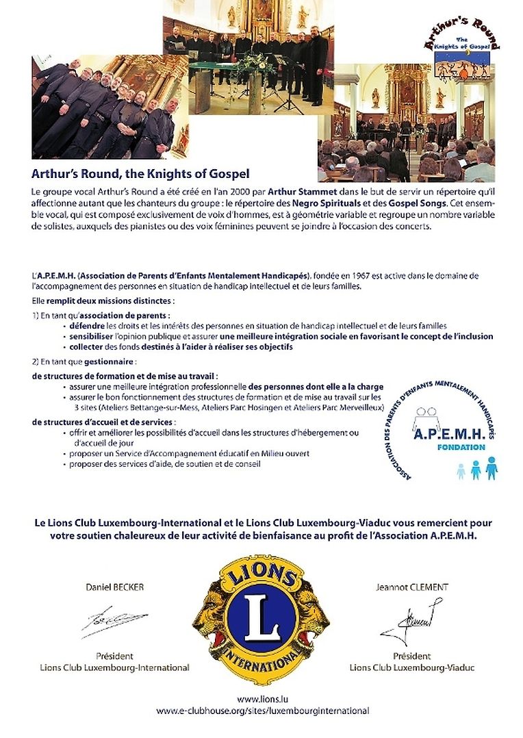 Concert Gospel organisé par les Lions Clubs Luxembourg-International et Luxembourg-Viaduc, de concert avec la Commune de Niederanven.