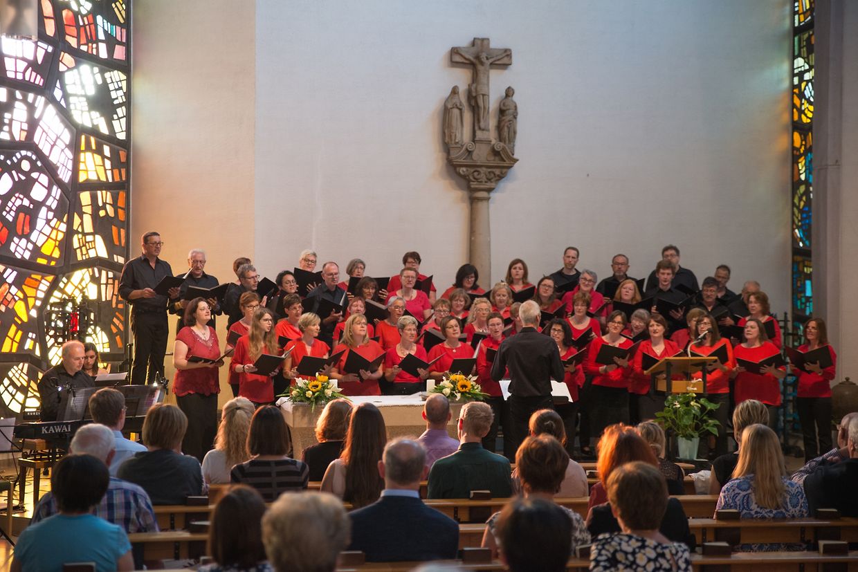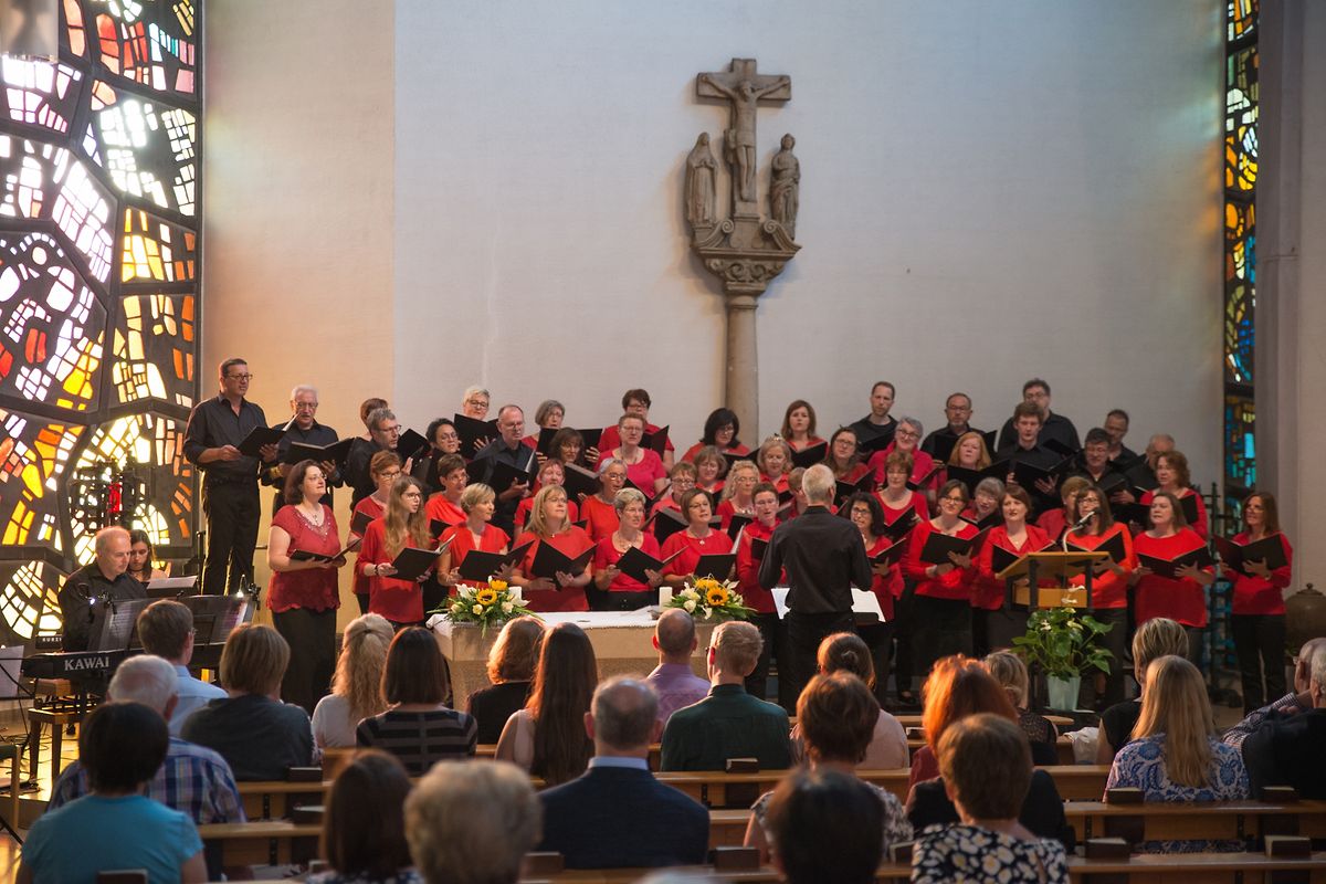 Am Abend des 17. Juni erfreuten die etwa 50 Sängerinnen und Sänger von Vivace unter der Leitung von Ulric Evrard die Konzertbesucher in der St. Willibrord Kirche in Bascharage mit einigen Ohrwürmern, wie dem „Halelujah“ von Leonard Cohen, „La Mer“ von Charles Trenet und „Champs Elysées“ sowie einem wunderschönen Harfensolo von Aysia Sergeeva.