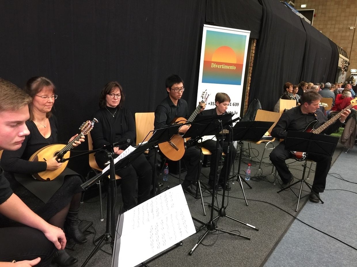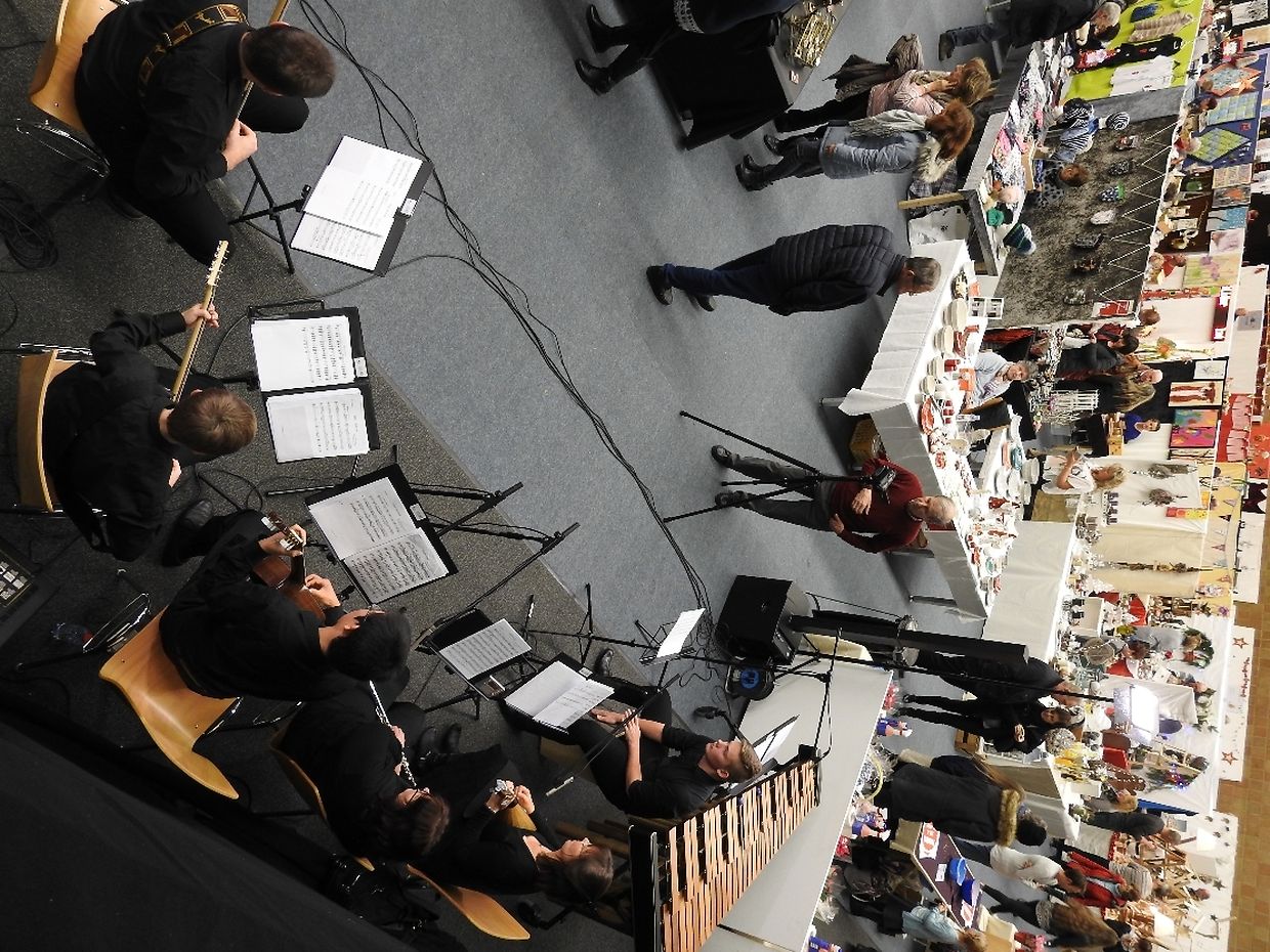 Den Auftakt der musikalischen Einlagen machte das Ensemble DIVERTIMENTO unter der Leitung von Präsidentin Isabelle Merlevede. Gespielt wurden bestens bekannte und gefällige Melodien, welche die vielen Besuchern des Kunstmarktes begeisterte. Rund 20 verschiedenen Melodien, eigens von Isabelle Merlevede arrangiert und aufs Ensemble zugeschnitten, ergänzten optimal die vorweihnachtliche Stimmung dieser gelungenen Veranstaltung. Mit „Sailing“ von Gavin Sutherland wurde gleich zu Beginn des Konzertes die richtige Stimmung geschaffen um die Besucher in ihren Bann zu ziehen.