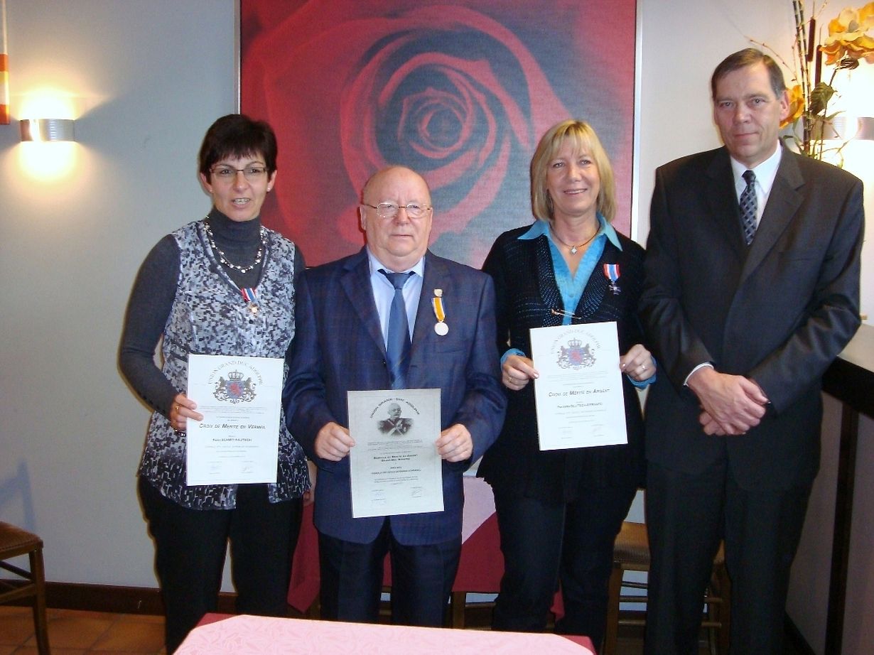 Beim anschliessenden Festessen verlieh der Präsident der Kirchenfabrik, Nico Klein Verdienstabzeichen der UGDA an folgende Mitglieder: Willy Wies für 50 Jahre Mitgliedschaft (Médaille de Mérite en Argent Grand-Duc Adolphe), Rosy Schmit-Fautsch für 20 Jahre Sekretärin und 10 Jahre Präsidentin (Croix de Mérite en Vermeil) und an Pierrette Deutsch für 15 Jahre Kassenführerin (Croix de Mérite en Argent).