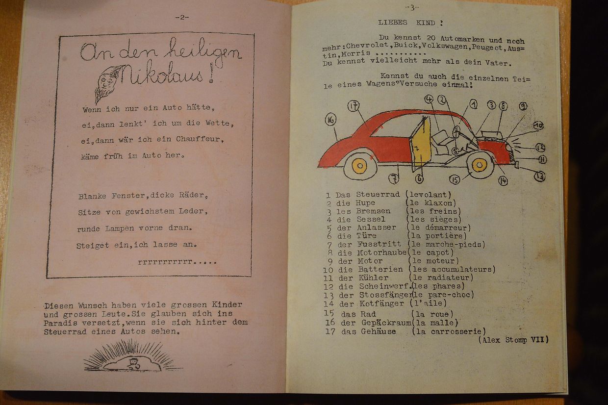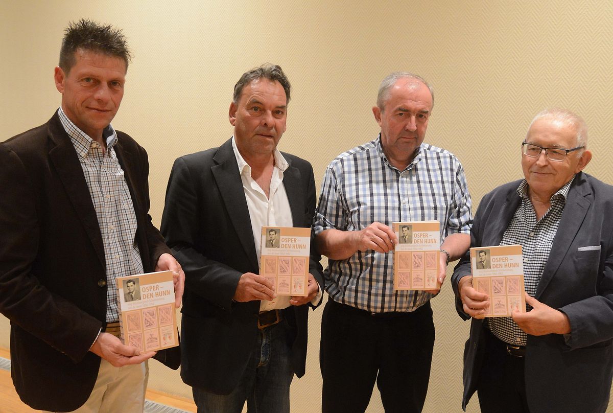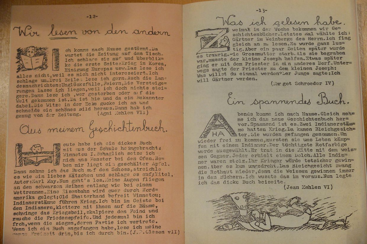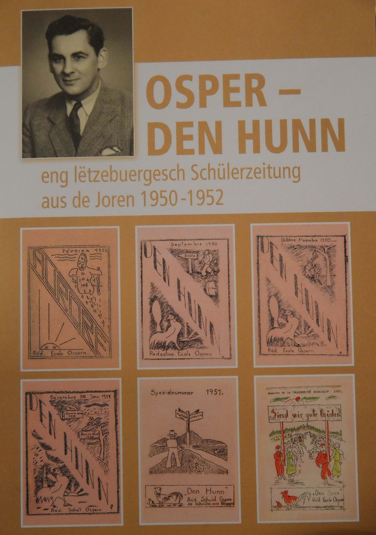 Ospern: Unter diesem Sensationstitel verbirgt sich die alte Schülerzeitung "Den Hunn" aus den Fünfzigerjahren, die nun in ansprechender Buchform eine zweite Jugend erlebt.Dafür zu danken haben wir dem früheren Hosenmatz "Kille Nikela", heute bestens bekannt als Nic. Schroeder, pensionierter Lehrer und passionierter Imker (von Königinnen umschwärmt) und der "Kropemannsgemeinde" Redingen, die dankeswerter Weise das Protektorat für dieses Abenteuer übernommen hat! Das umfangreiche Buch ist eine wahre "Viirwetztuut", voll gespickt mit Kinderaufsätzen über Freud und Leid aus der Heimat, mit Anekdoten und Erinnerungen an den verehrten Dorfschulmeister.... Edmond Pepin war ein Allroundtalent : Er betreute nicht nur voll Begeisterung die Schuljugend (1. bis 8. Klasse!); nebenbei war er auch Organist und Dirigent des Gesangvereins, Kapitän der Osperner Fussballmannschaft und Berater der Eltern.Vor allem aber sorgte er für Aufmerksamkeit und Begeisterung bei seinen Schülern und Lehrerkollegen mit seiner Freinet-Methode, die auf freie Mitarbeit setzte und auf das konkrete Erkunden der Umwelt!Welch ein Unterschied zur Alltagshetze des modernen Schulbetriebs !