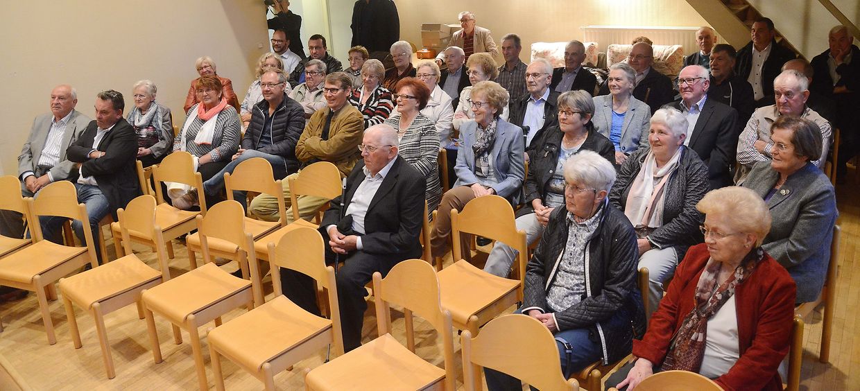 Unsere in Ehren ergrauten Journalisten "lénks a riets vun Attert an Eisch" dürfen nun schmunzelnd ihre Erlebnisse aus der Kinderzeit auffrischen : Erinnerungen an die "Kiirmesfinn" mit ihrem "Zockerbuttik", an aufregende Theateraufführungen auf verstaubter Dorfbühne, ans Schweineschlachten und Müllentsorgen in Eigenregie ...Das Buch ist eine wahre Fundgrube, ein "Codex aureus" mit nostalgischem Glanz! Der geneigte Leser erfährt Erstaunliches und Belehrendes z.B. : aus der "Räicheler Kieselkoll", vom "Eltzer Kauleksuewen", von den "Maarteler Leekëpperten", von Christmetten in Clairefontaine, vom "Napoleonsgaard" und der "Misèresbréck", vom "Helperknapp" und vom "Kuelebierg" und auch warum ein jagdfreudiger Dechant vors Gericht zitiert wurde ... Sie sind neugierig geworden? Gut so! Restexemplare im Retro-Look warten auf der Redinger Gemeinde auf Kundschaft.(TEXT: RENE DEVAQUET) (FOTOS: CHARLES REISER)