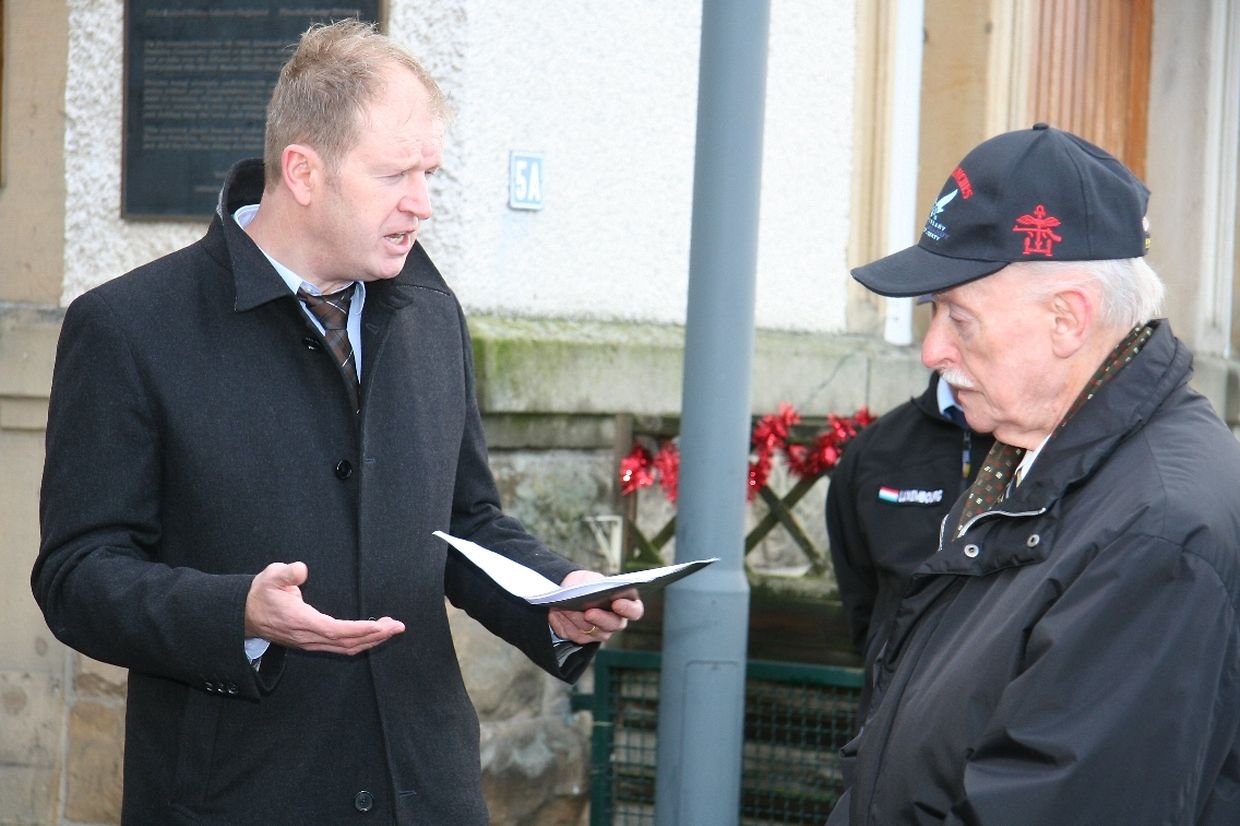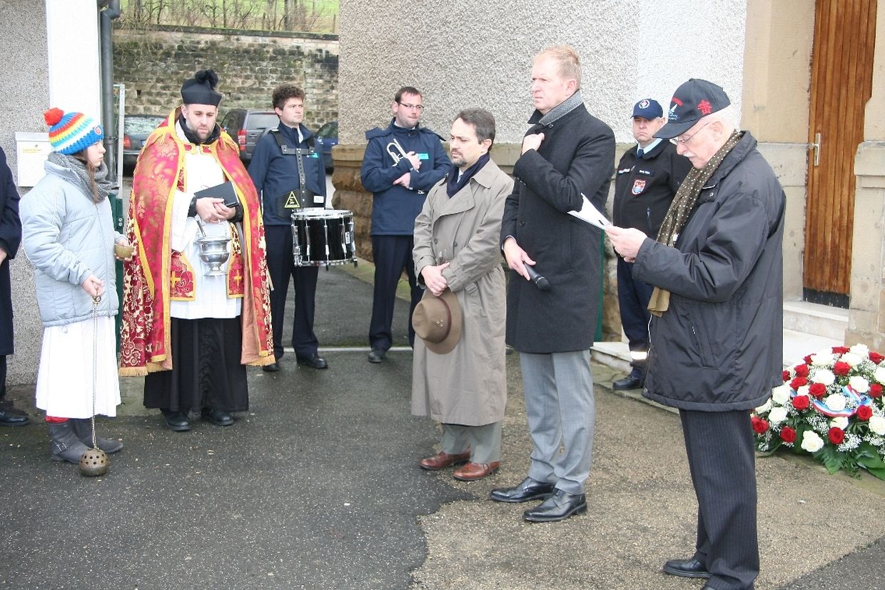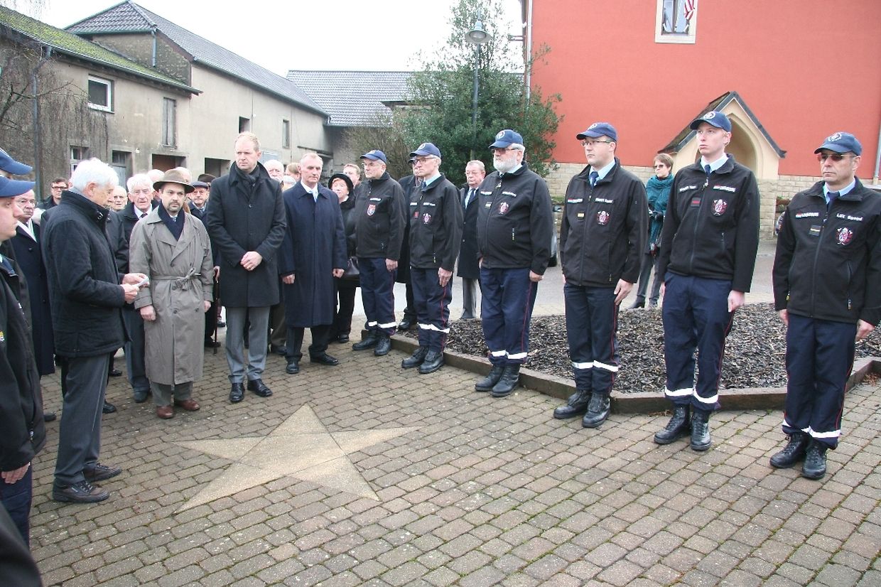 So fanden die Reserveoffiziere sich auch wieder am Sonntag, den 14. Dezember um 10 Uhr am Memorial an der Abzweigung zum Fromburgerhof ein. Dort zündeten sie in Anwesenheit von Lawrence J. Fields, dem Vertreter des US-Botschafters in Luxemburg, Kerzen an als Ehererbietung für alle amerikanischen Soldaten, die ihr Leben im Kampf für die Freiheit unseres Landes in der Region um Osweiler verloren oder Schaden an Leib und Seele erlitten.