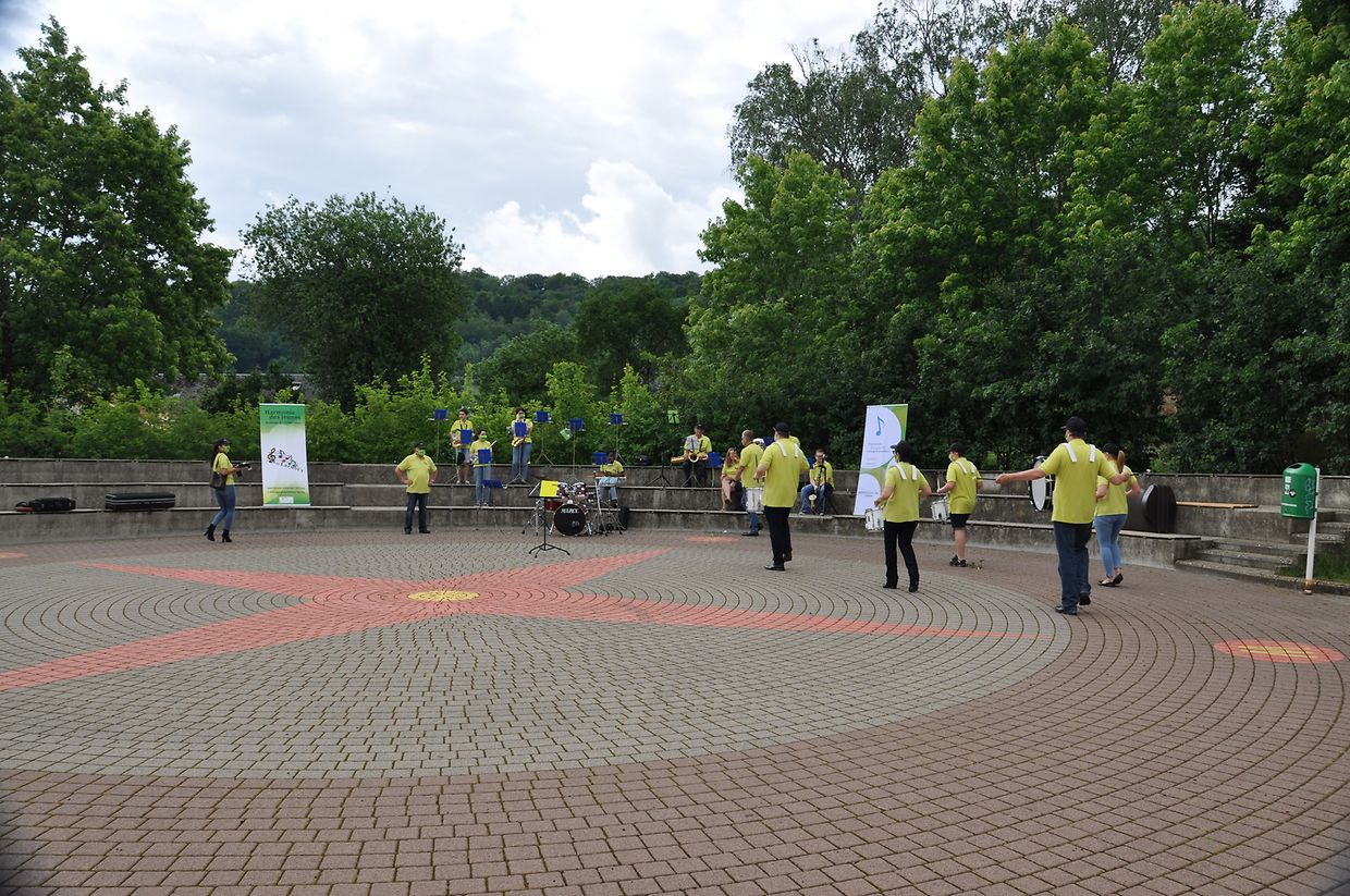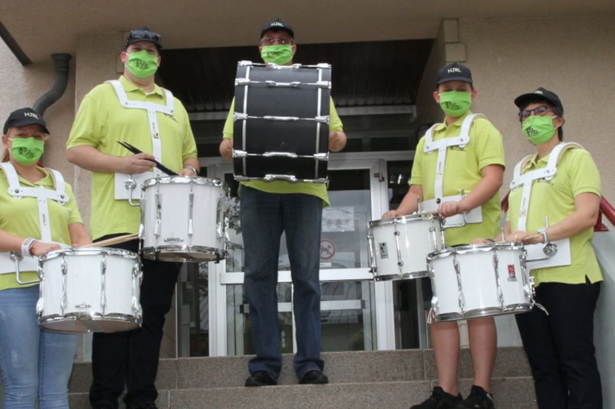 Man hatte sich für den schönen Platz bei der Schule "Beim Tëtelbierg" in Rollingen (Lamadelaine) entschieden, um den Anwohnern eine kleine Freude mit ihrer Musik zu machen.