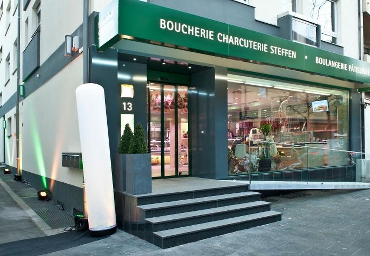 Pour cette nouvelle adresse, Steffen a osé le pari d'un nouveau concept pour le moins atypique et importé d'ailleurs, en créant deux entités sucrée et salée au sein d'un même espace. En effet, le rayon boucherie côtoie désormais celui de la boulangerie et des pâtisseries. Une idée originale qui permet, depuis sa création, d'offrir à sa clientèle plus de confort de proximité et d'élargir sa gamme de service. A ceux qui se demanderaient si le pain ne risque pas d'avoir un goût de salami, la Maison est formelle: grâce à son système de climatisation performant, il n'y a aucun risque de mélange d'atmosphère entre les deux rayons.