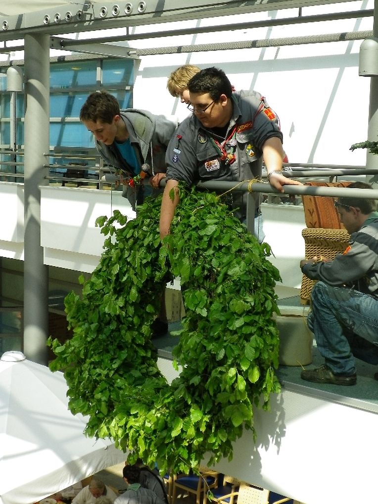 Wie es in den letzten Jahren schon zu einer schönen Tradition geworden ist, kamen auch dieses Jahr die Wëllefcher und Scouten an Guiden der HOGA, aus der Stadt, schon früh zusammen um bei ihrem Home, 4 rue de la Semois einen Maikranz zu binden.