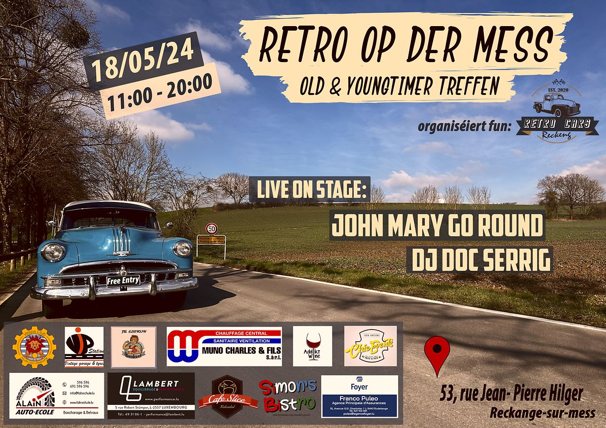 Reckange-sur-Mess Retro op der Mess Paul Lambert Published on Monday, 6 May, 2024 at 15:50 Reckingen/Mess, Luxemburg Car Meet zu Reckeng op der Mess beim Gemengenatelier. Verschidden Stänn mat oofwiesslungsraicher Offer un Iessen, Gedrénks an aaner Produit'en. Sprangschlass fier d'Kanner. Report inappropriate content