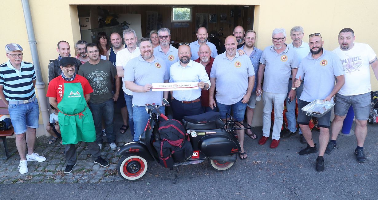 Gentleman Gito nennt er seine Aktion. Der Deutsche Markus Mayer ist mit seiner 50-ccm-Vespa durch die Welt unterwegs. und sammelt auf diese ungewöhnliche Weise Geld für krebskranke Kinder. Unterstützung findet er bei Gleichgesinnten, die sich in Vereinen zusammnengeschlossen haben, um gemeinsam die Leidenschaft für den italienischen Kultroller zu teilen. Zum zweiten Mal war Markus Mayer jetzt beim Vespa-Club "Roude Léiw" mit Sitz in Reckingen/Mess zu Gast. Er fuhr nicht mit leeren Händen weiter, denn die luxemburgischen Vespa-Freunde, die sich 2012 in dem Verein zusammengeschlossen haben, unterstützen Mayers Aktion mit 4000 Euro. Markus Mayer ist seit dem 3. Juli mit drei PS in Europa unterwegs. Er startete in Leonberg bei Stuttgart und will seine Tour am 25. August abschließen. Nach Deutschland, Österreich, der Schweiz, Italien, Dänemark und Belgien war Luxemburg das siebte Land, das er besuchte. Dabeii legte er bisher 5000 Kilometer zurück. Mayer hat auch schon Pläne für 2022. Dann will er 40 Länder mit seiner Vespa bereisen und es dabei auf 31 000 KIlometer bringen. Bisher wurden durch den Gentelamn Giro 2021 50 000 Euro gesammelt, die krebskranken Kindern zugute kommen. Unter den Spendern war u.a. der Vespa-Club Hongkong. rsd