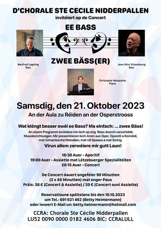 D´Chorale Ste Cecile Nidderpallen invitéiert op de Concert EE BASS ZWEE BÄSS(ER)