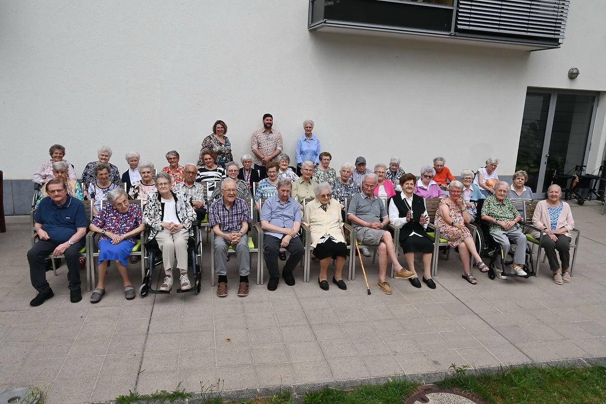 Réiden/Atert: Am Ofstand vun jeweils drëi Méint, ass et och am Home pour personnes agées Saint- François zu Réiden, di schéin Traditioun fir hir Jubilaren zum Gebuertsdag ze feieren. Am Kader vun enger grousser Gebuertsdagsfeier, den 29. Juni konnten all di 38 Matbewunner vun de Méint Mäerz, Abrëll a Mee, d’Gratulatiounen am Numm vun der Direktioun mam ganzen Pflegepersonal vun der Sr. Benedikta, dem Françoise Erpelding a Mike Heintz entgéint huelen. Di schéin Rousen an de klenge Kado déi vun de Leit vum Grupp „R“ iwerreecht gi sin, huet de Jubilaren och vill Freed gemeet. Fir den musikalischen Encadrement huet den Entertainer „Haemelmaus „de ganzen Nommettëg och bäschtens gesuergt. Bei engem Glas Crémant, engem gut gefëlltem Teller, Kaffi a Kuch huet dess schéi Feier, verbonnen mat flotter Danzmusik zesummen mat der Famill hiren würdigen Ofschloss fond. D’Jubilaren vum Mount Mäerz: Marie- Louise Gloesener- Jacqué (80 Joer), Arthur Pletschette (92), Lucienne Schneider- Genin (93), Christiane Decarniere- Uyttendaele (84), Alphonse Schroeder (86), Yvonne Graf- Mossong (93), Lydia Struck-Krieps (70), Nicolas Collard (85), Denise Goedert- Knops(90), Irma Krieps- Olsem (95), Anne Schweitzer-Aust (86), Laure Weber- Schrantz (79) an Léonie Fey- Hommel (87). Mount Abrëll: Marie- Blanche Becker- Thilmany (98), Virginie Rodesch- Schreiber (96), Marguerite Reding- Zieser (93), Aline Bach- Philippe (87), Marie- Thérèse Diederich- Wolff (93), Jean Colbach (87), Gisèle Juchem- Quinet(83), Marie Wilmes (77), Yvonne Thoma- Jeitz (91), Marie- Madeleine Fasbinder- Nilles (93) an André Reimen (77). Mount Mee: Margot Majeurs-Philipp (84), René Wolter (85), Nicole Suchomel-Neuhengen (88), Cécile Collard- Reuter (83), Félicie Zacharias-Conrardy (87), Raymonde Wanderscheid- Belche (86), Marco Gehlhausen (67), Susan Nerantzis- Gibson (82), Anne Flammang- Nilles (95), Georgette Gratia- Wagner (92), Lucie Hoffmann (98), Joseph Bredimus (76), Josée Schleich- Gloesener (88) an Jacquline Karger- Weis (87). (CR (Foto: Charles Reiser)