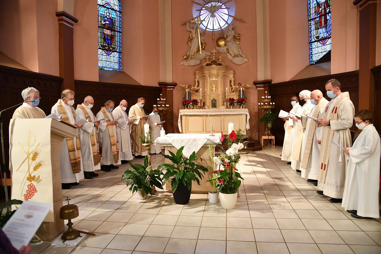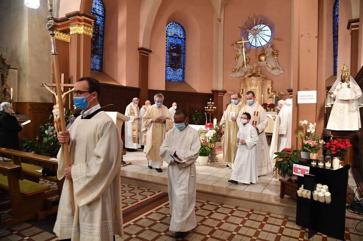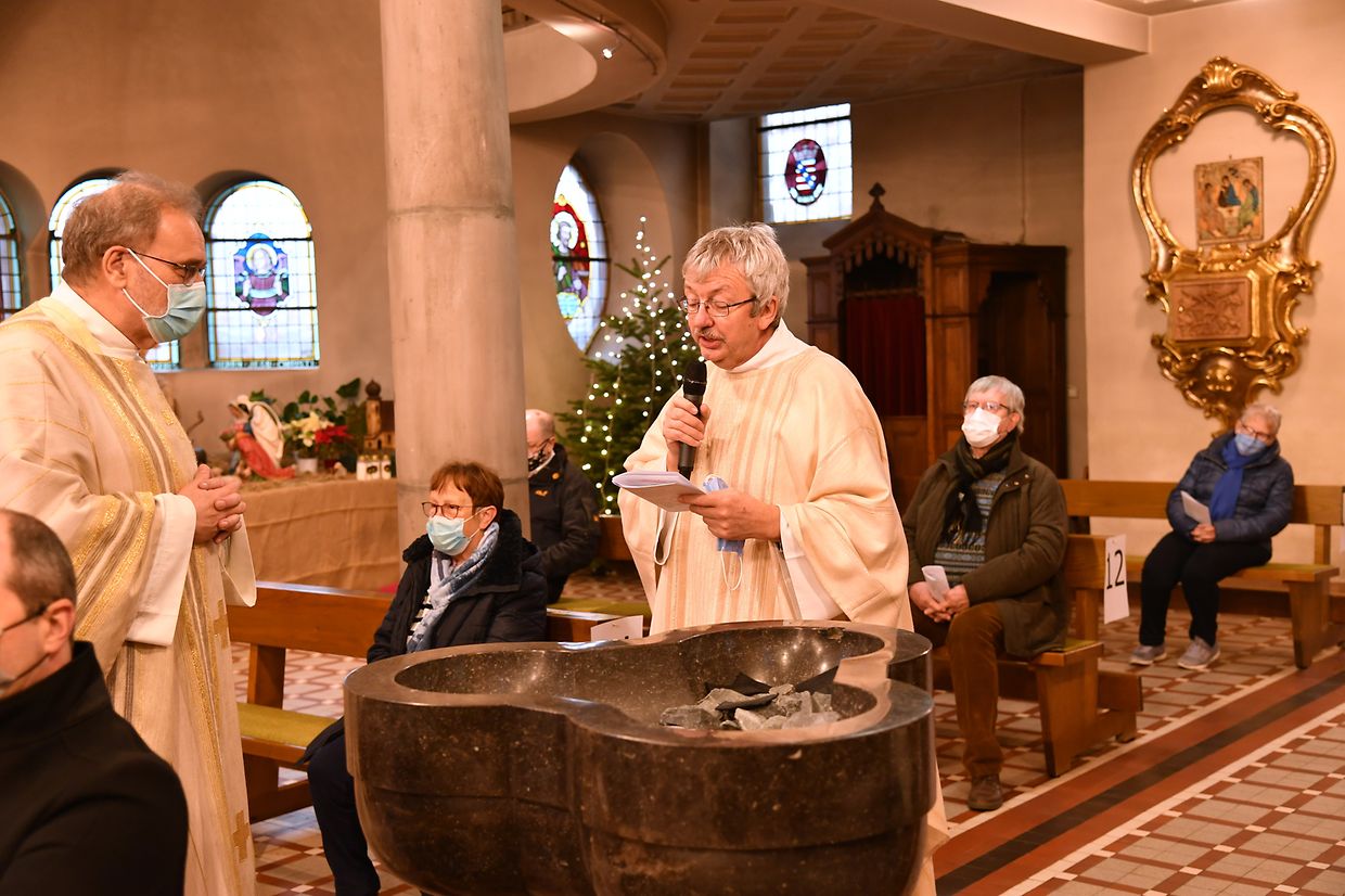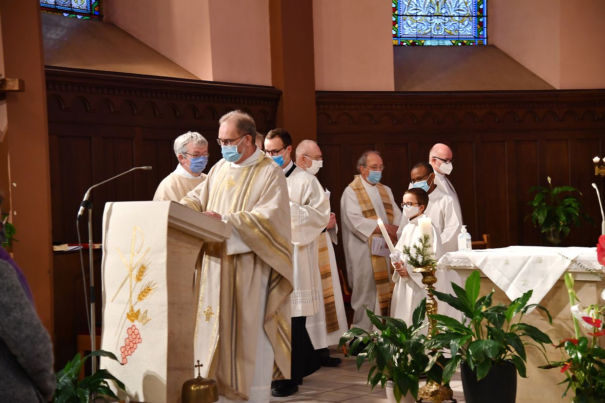 Réiden/ Attert: Am Kader vun enger beandrockender Feier , e Sonnden, den 3. Januar an der Kierch vu Réiden/Atert, ass de Pater Jean- Jacques Flammang offiziell als neie Paschtouer vun de Paren Atertdall Sainte- Claire an Rammerich Saint – Valentin installéiert gin. No de Wëllkommensgréiss vum Präsident vum CGP, Misch Lallemand, huet Christine Lallemand dem neien Geeschtlechen de Schlëssel vun der Kierch iwerreecht. Am Ufank vun der Feier déi zesummen mat enger Reih Geeschtleschen a Pateren vum Uerden Sacré- Coeur Clairefontaine , Gemengevertrieder a Parleit zelebréiert gouf, ass den Dechen Félix Steichen a senger Laudatio op d’Liewen vum Pater Flammang agaangen, den 1956 zu Lamadeleine op d’Welt komm ass. Op der kathoulischer Universitéit zu Louvain huet hien Philosophie an Theologie studéiert. Nom Départ vum Koordinator Gérard Kieffer an dem Katechet Carlo Philippe, den elo a Pensioun geet, gin di zwou Paren an Zukunft vun de Geeschtlechen Jean- Jacques Flammang als curé- moderateur a Vincent Billot curé- subsdiaire souwi d‘Paschtéier Mathieu Janssen a Marcel Grethen, geleet. Pastoralmataarbechterin bleift weiderhin Mme. Joke de Kroon a Sekretärin Mme. Michèle Asseray. No deems dat de Pater Jean- Jacques Flammang sech bei Allen fir die schéin Installatiounsfeier bedankt huet, war séi Wonsch och an Zukunft, zesummen mat allen zoustännigen Autoritéiten, fräiwëlligen Matarbechter an alle Leit aus de Paren, an enger gudder chrëschtlecher Gemeinschaft zesummenzeliewen. Musikalisch a gesanglich gouf des Feier vum lokalen Gesangveräin mam Organist Carlo Philippe verschéinert. (CR)( FOTOEN: CHAREL REISER.