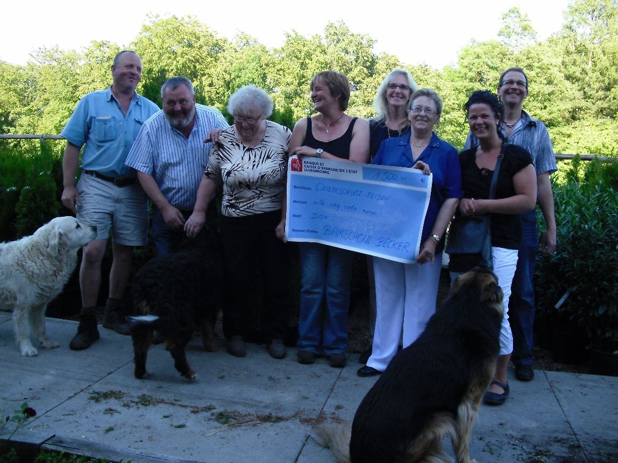 Die Gärtnerei "Bamschoul Becker" aus Steinsel überreichte vor einigen Tagen einen Scheck über 1500.- Euro an den Vorstand der Tierschutzorganisation "Déiereschutz Réiden/Attert". Mit der gespendeten Summe finanziert die Organisation aus Redingen u.a. die medizinische Betreuung herrenloser und ausgesetzter Tiere. Ihre Tierliebe stellten die Inhaber der "Bamschoul Becker" bereits vor kurzem unter Beweis, als man sich spontan dazu bereit erklärte, einige kranke, herrenlose und vom Tierschutz Redingen gesund gepflegte Tiere zu adoptieren.