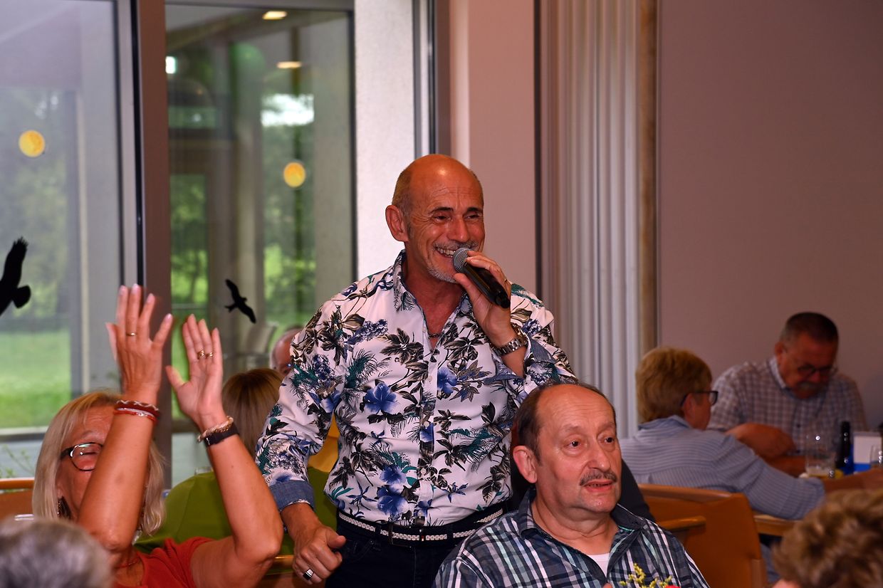Réiden/Atert: No 3 Méint Paus ass di schéin Traditioun fir d’Jubilaren vun de Méint Juni, Juli an August fir hiren Gebuertsdag am Home Saint François ze éieren och weidergefuert gin. Fir den Home- Direkter Dany Oestreicher mat sengem Team vum Club R war et eng besonnesch Freed am festlich gerëschtem Saal allen 33 Gebuertsdagskanner mat enger Rous an engem klenge Kado dat Allerbëscht an och weiderhin eng stabil Gesondheet zu wënschen. Richtig Gebuertsdagsstëmmung war de ganze Nommëtteg ugesoot, wou den Entertainer Rol Gieres mat flotter Ënnerhaalungsmusek fir angenehm Momenter an engem kräftigen Happy Birthday zesummen mat den Memberen vun der Famill bei einem Glas Crémant, Kaffi zesummen mat engem deftigen Teller an Gebuertsdagskuch, gesuergt huet. D’Jubilaren fir de Mount Juni: Léonie Meyer -Pint (87 Joer), Margot Guth-Hemes (96), Michel Meis (81) Delphine Fisch- Hennicot (94), Maria Wald- Wagener (81), Jean Joseph Schmitz (86), Catherine Gereke- Schmit (91) a Renée Wagener- Haas (89). Mount Juli: Céline Peller- Knaus (88), Louise Bildgen-Kohl (95), Julie Mélanie Boden- Claude (96), Marie Madeleine Meiers (80), Henri Heidesch (82), Jos Lang (81), Lucien- Jean Pierre Colbett (88), Philomène Mores-Heiderscheid (88), Annette Schroeder-Seyler (83), Irène Didier (91), Georgette Wantz- Leytem (83), Pierre Braun (78), Andrée Schaus-Reisen (86) an Marcel Risch (87). Mount August: Jeanny Haas- Bockler (77), Léonore Jacoby- Thill (80), Jeanne Bintener- Leytem (84), Julie Wohl (92), Justine Derneden- Waltzing (94), Liliane Hebeler-Fincoeur (87), Margot Hoffmann- Clesen (84), Georgette Elsen- Degros (89), Louis Diederich (95), AlpAChonsine Schreiber- Trierweiler (83) an Sr. Aurelia Mores (88). (CR) (Foto: Charles Reiser)
