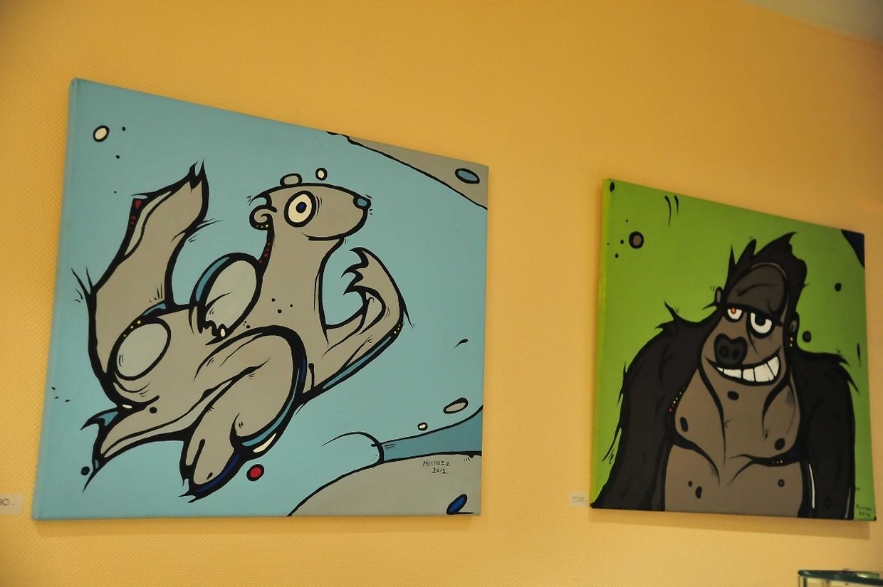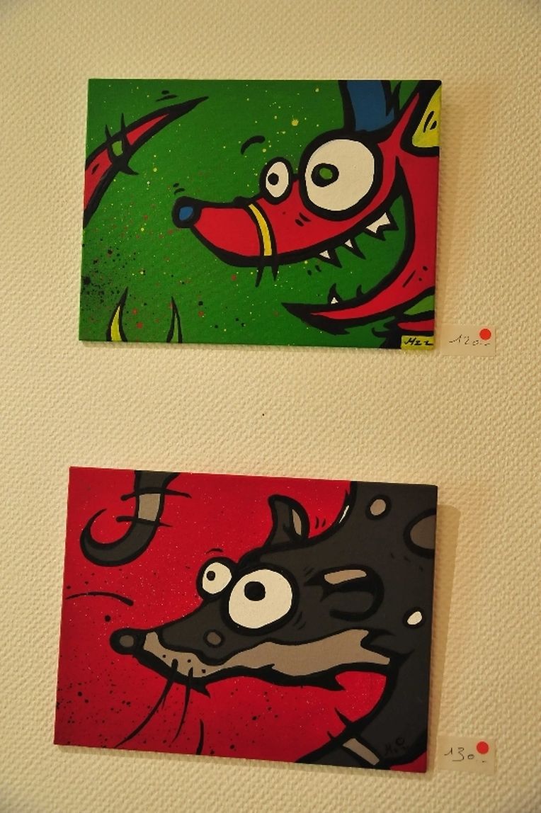Marina Herber, 1980 in der Normandie geboren und wohnt seit dem sechsten Lebensjahr in Osweiler. Die freischaffende Künstlerin stellt zurzeit rund 20 Illustrationen und Cartoons in der Kunstgalerie „Ever Kie Arts“ in Redingen aus, die sie in ihrer Freizeit mit Acryl und Wachs auf Sperrholzplatten vermischen konnte. Im Mittelpunkt der Exponate, die hier in verschiedenen Formaten zu bewundern sind, kommen vor allem die Tiere zum Ausdruck und bezeugen damit das malerische Talent der jungen Künstlerin die bereits in verschiedenen Ausstellungen u.a in Paris, Montreal, Saarbrücken oder in Luxemburg ihre Feinfühligkeit mit dem Pinsel dem interessierten Publikum beweisen konnte. Die Ausstellung auf Nummer 5a, Grand’rue in Redingen ist noch bis 26. Dezember ( dienstags bis freitags zwischen 10 und 12 bzw. 13.30 bis 18.30 Uhr sowie samstags von 10 bis 12 bzw. von 13.30 bis 17 Uhr ) zu besichtigen. Weitere Infos gibt es unter Tel. 23 62 03 50 oder 691 871 9334. ( FOTOS: CHARLES REISER)