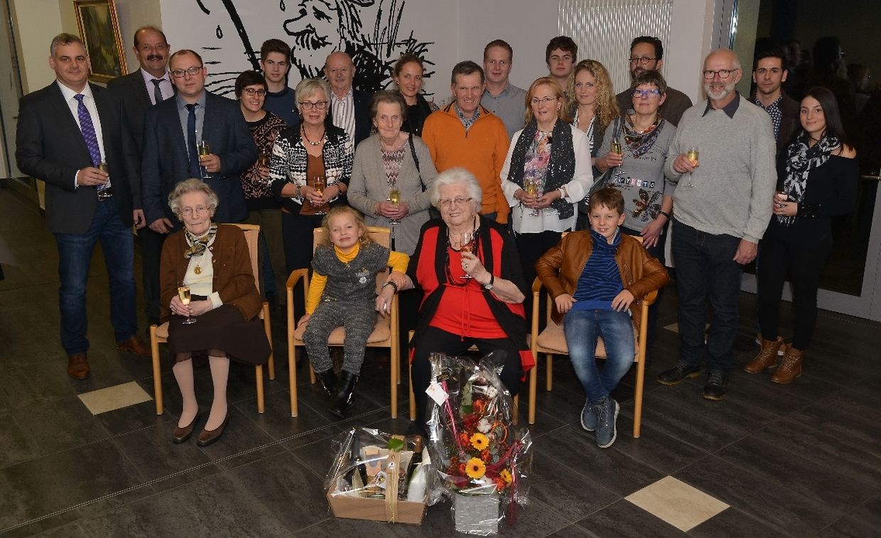 Redingen/ Attert: Seit dem 5. Februar 2010 fühlt Martha Arendt- Birckel sich im „ home pour personnes agées“ in Redingen/ Attert sehr wohl und konnte dieser Tage ihr 90. Wiegenfest auch gebührend feiern. Martha Birckel kam als jüngste Tochter von zwei Kindern des Ehepaares Adolphe Birckel und Léonie Clerf am 7. November 1926 in Grosbous zur Welt. Am 29. April 1949 wurde Hochzeit gefeiert mit Arthur Arendt vom Lellerhaff (Colmar- Berg). Während Ehefrau Martha sich um den Haushalt und der Erziehung ihrer beiden Söhne und ihrer Tochter kümmerte, war sie ihrem Ehemann stets eine große Hilfskraft im elterlichen Bauernbetrieb, den beide in Grosbous auch weiterführten. Ihre Freizeit genoss die Jubilarin als Gründungsmitglied beim lokalen Seniorenverein, als Ratsmitglied in der Gemeinde Grosbous und aktives Mitglied bei den lokalen Fraen a Mammen und bei der Garten- und Heim Sektion Grosbous. Bis heute noch ist die Jubilarin den „ Fräizäitfrënn Grosbous“ treu geblieben. Ihr Ehemann Arthur verstarb am 16. März 2000. Nach den Glückwünschen und der Überreichung von einem schönen Blumengebinde seitens von Home- Direktor Christian Ensch war es für Bürgermeister Armand Olinger mit Schöffe Jeannot Faber und Rat Paul Engel an seiner Seite, eine besondere Ehre die allerbesten Glückwünsche, seitens der Gemeinde Grosbous mit einem Präsentkorb als Anerkennung überbringen zu dürfen. Den Gratulationen schlossen sich ihre Familienmitglieder anlässlich dieser Feier auch gerne an. (TEXT/FOTOS: CHARLES REISER)